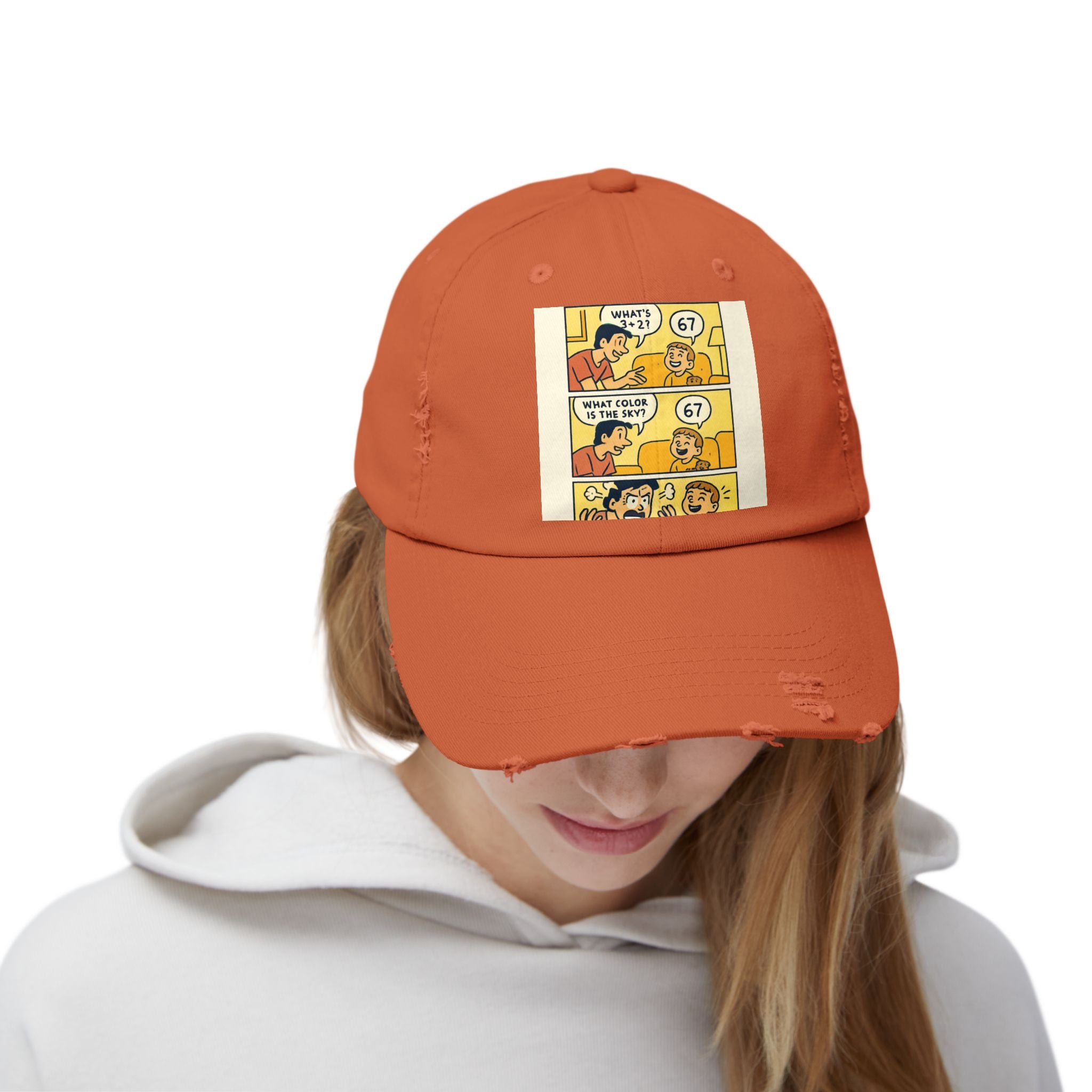 Make a bold statement with our unique distressed cap featuring the playful phrase “67.” Perfect for parents, teachers, and anyone who loves a good inside joke, this cap combines vintage style with a touch of humor. Crafted from high-quality, comfortable materials, it offers a relaxed fit and a worn-in look that feels like an old favorite. Wear it to spark conversations, share smiles, and show off your one-of-a-kind personality—because sometimes, "67" is the only answer that matters!