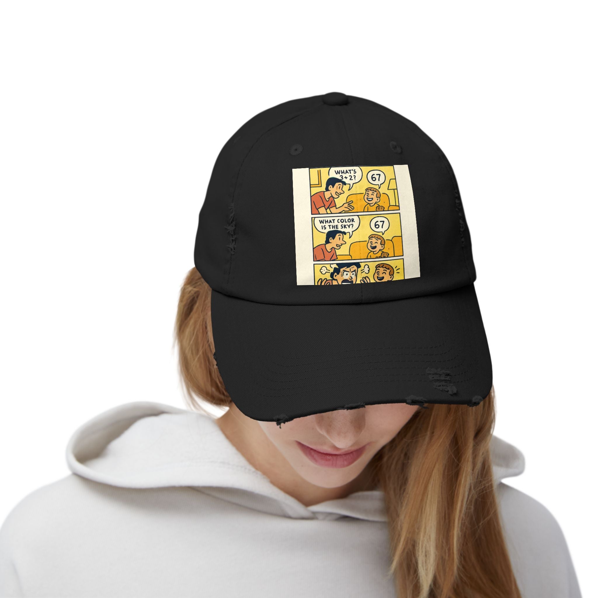 "67 is a Child's Only Answer" - Unisex Distressed Cap