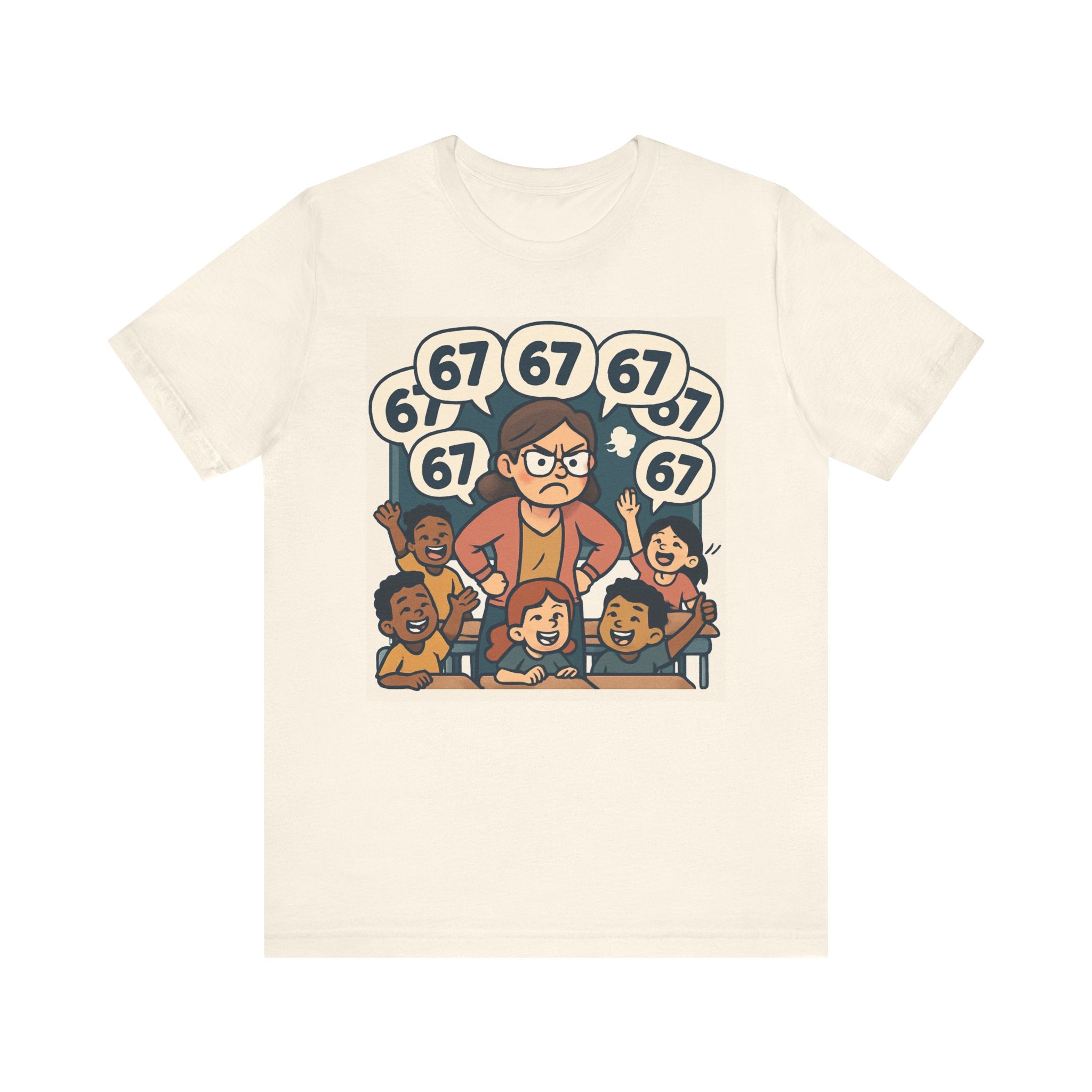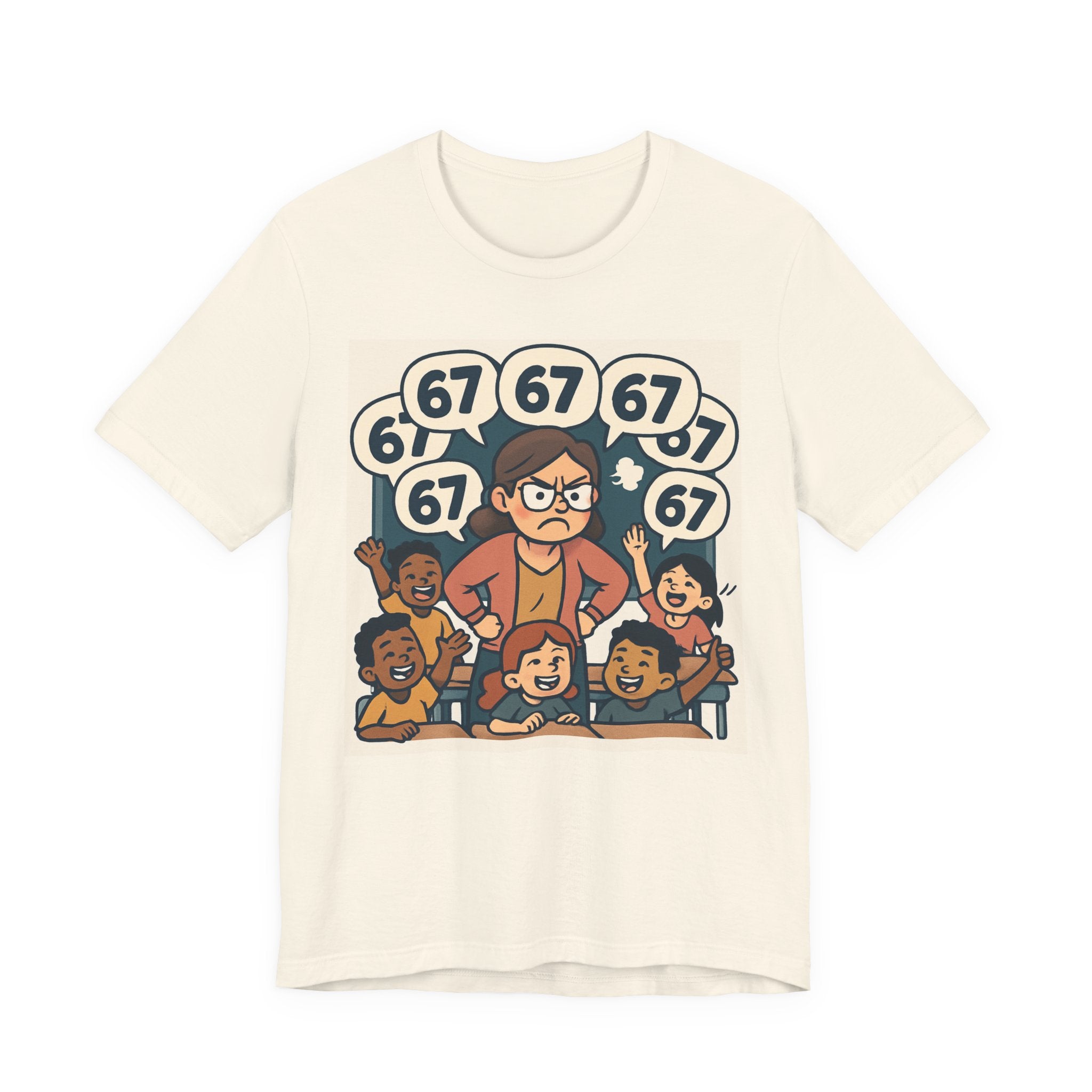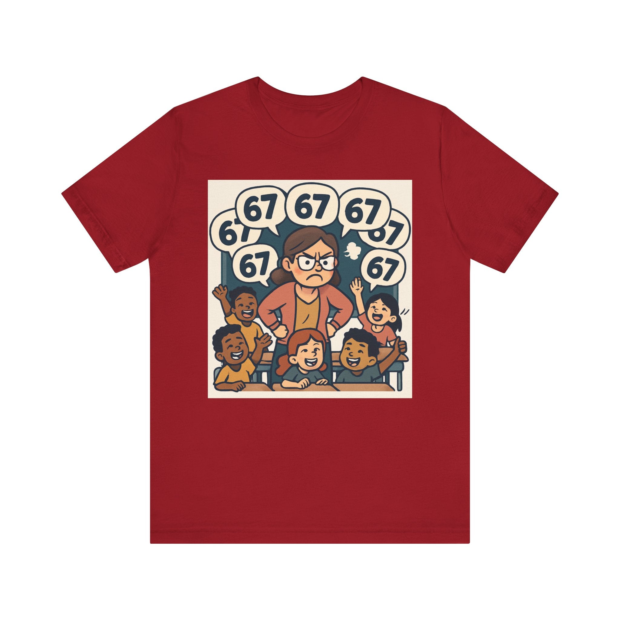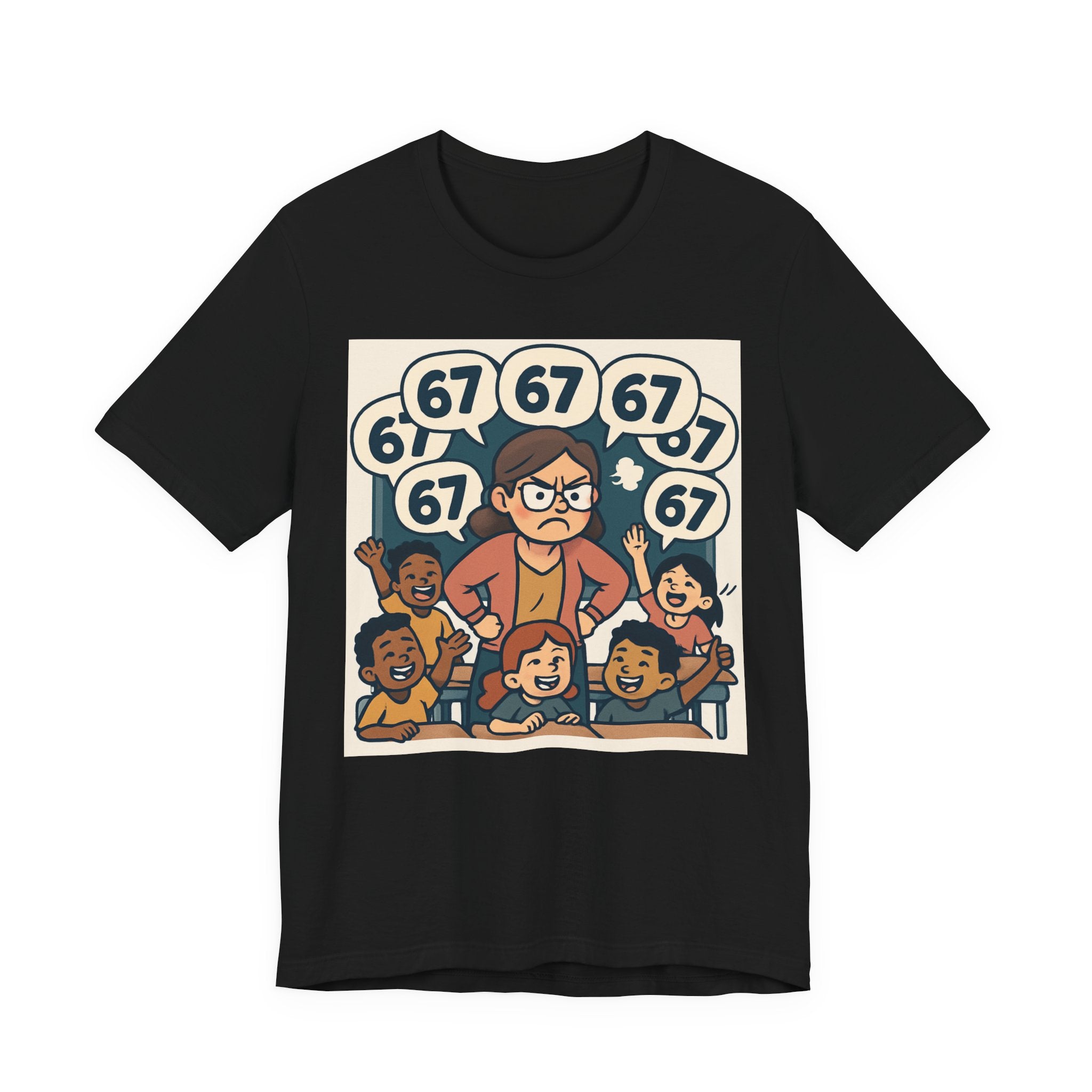 Add a dose of classroom humor to your wardrobe with our t-shirt featuring a frustrated teacher in a classroom where every kid’s answer is “67!” Perfect for teachers, students, and anyone who appreciates a good laugh, this playful tee captures the fun (and chaos) of school life. Made from ultra-soft, premium fabric, it offers all-day comfort and a standout design that’s sure to get smiles. Wear it to school, casual outings, or gift it to your favorite educator—because sometimes, 67 really is the only answer!