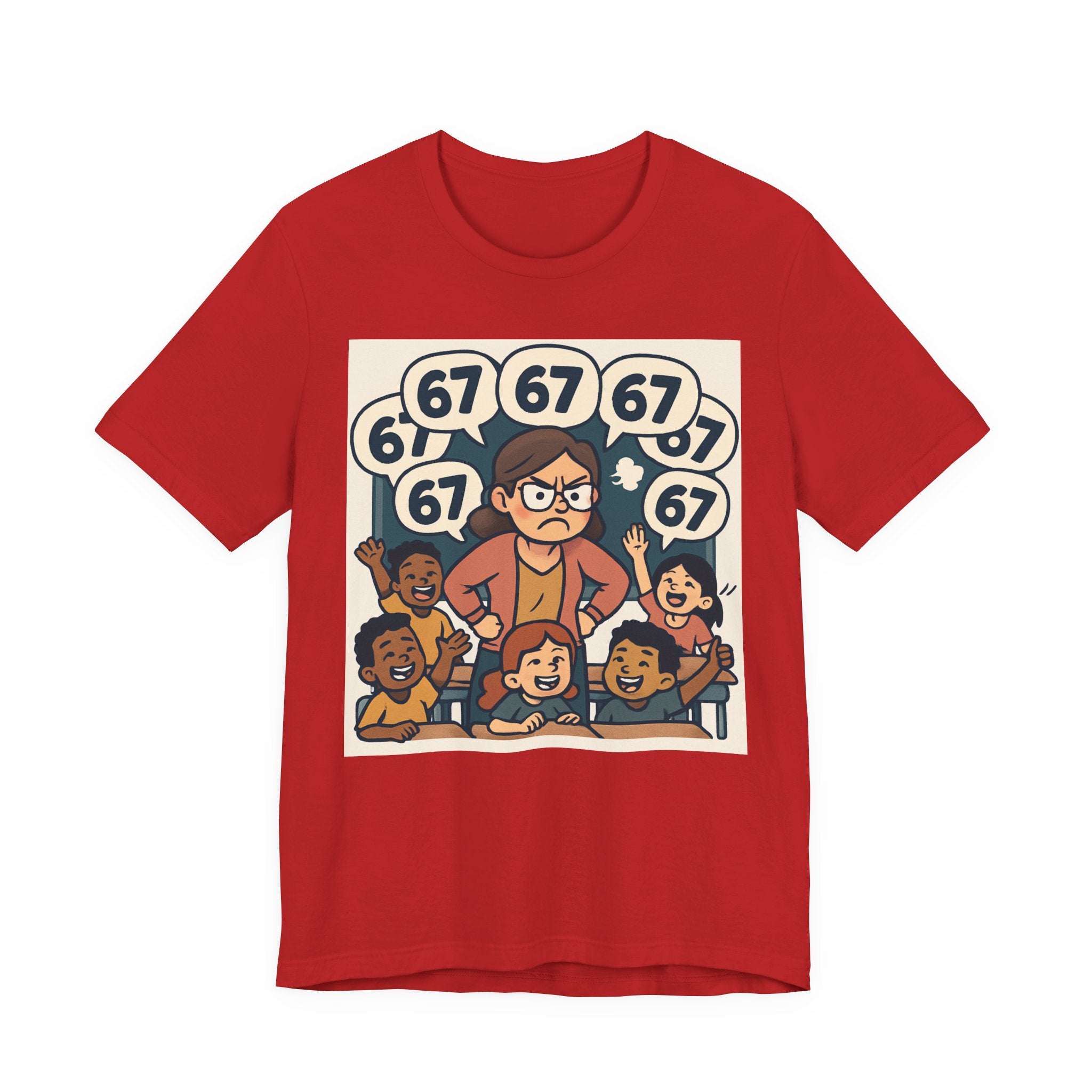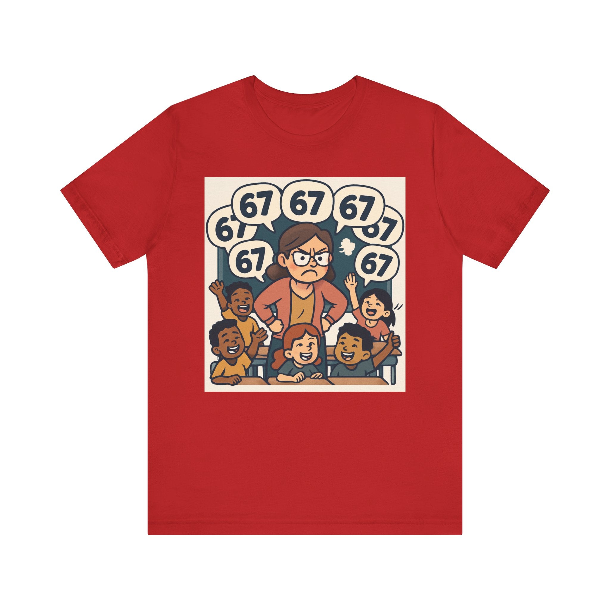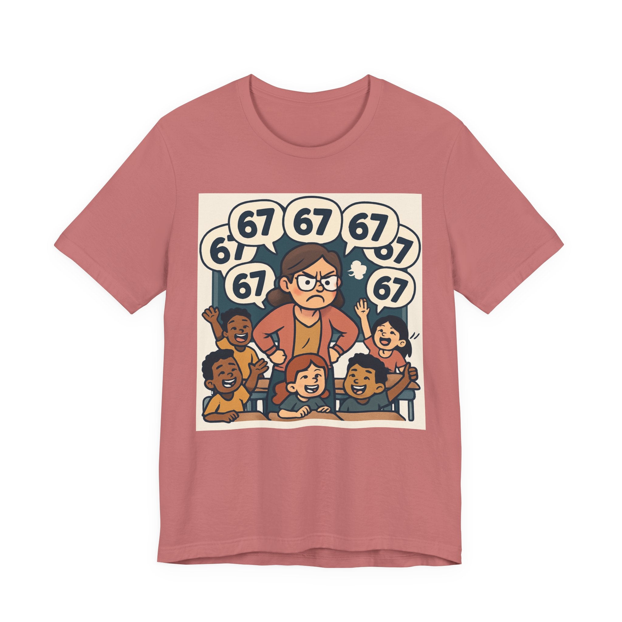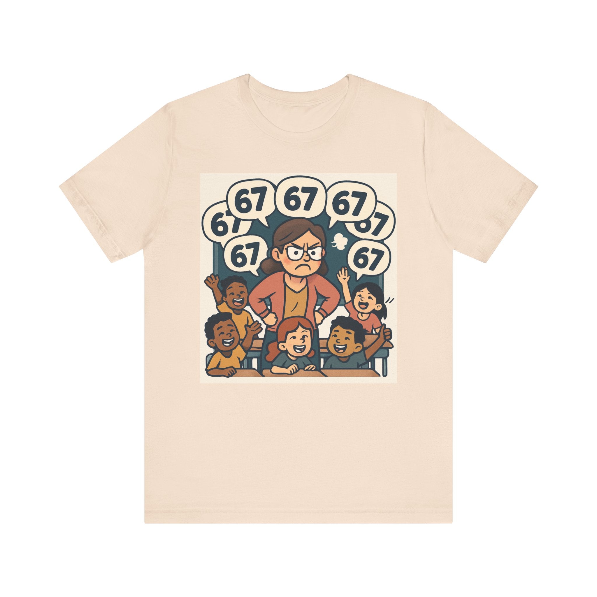Add a dose of classroom humor to your wardrobe with our t-shirt featuring a frustrated teacher in a classroom where every kid’s answer is “67!” Perfect for teachers, students, and anyone who appreciates a good laugh, this playful tee captures the fun (and chaos) of school life. Made from ultra-soft, premium fabric, it offers all-day comfort and a standout design that’s sure to get smiles. Wear it to school, casual outings, or gift it to your favorite educator—because sometimes, 67 really is the only answer!