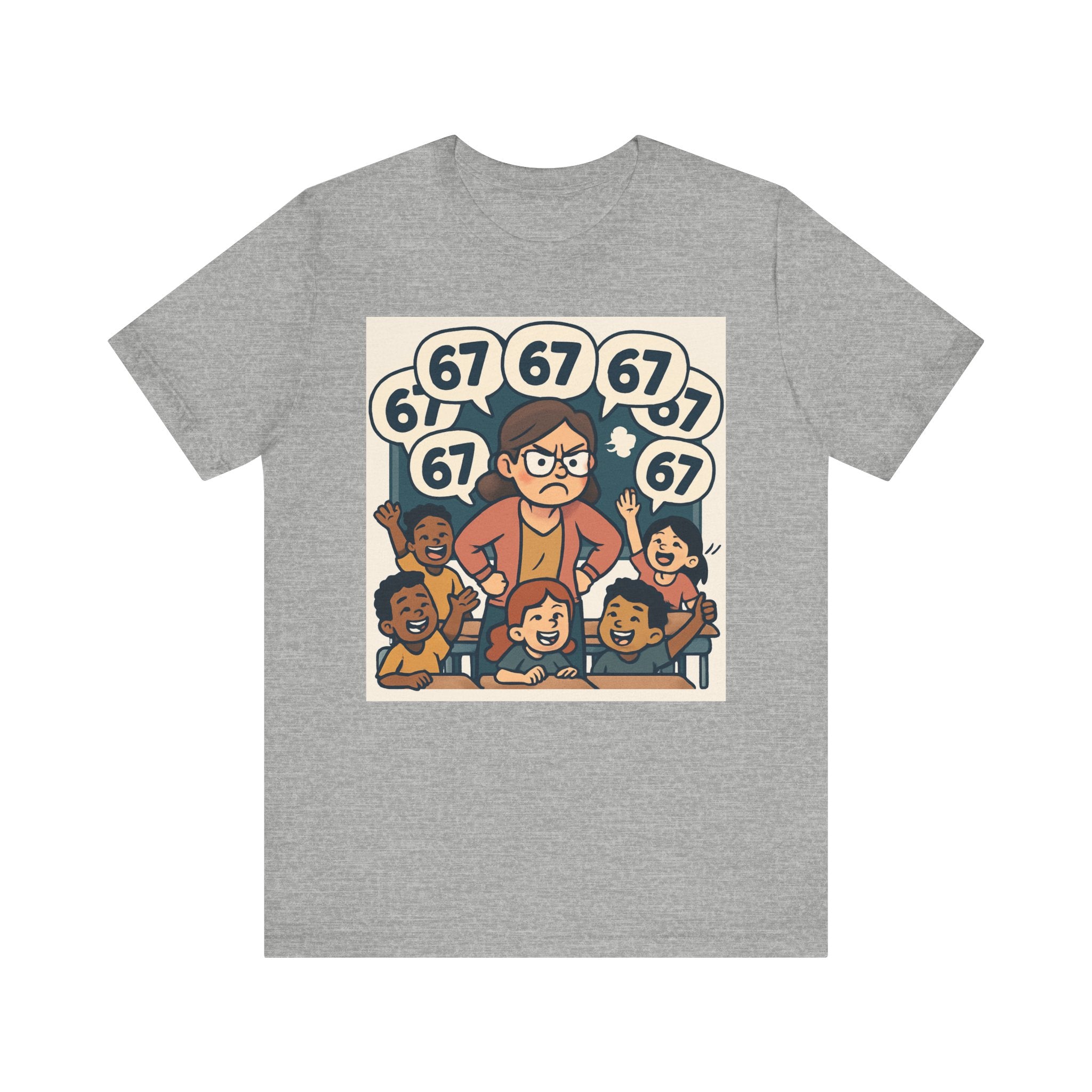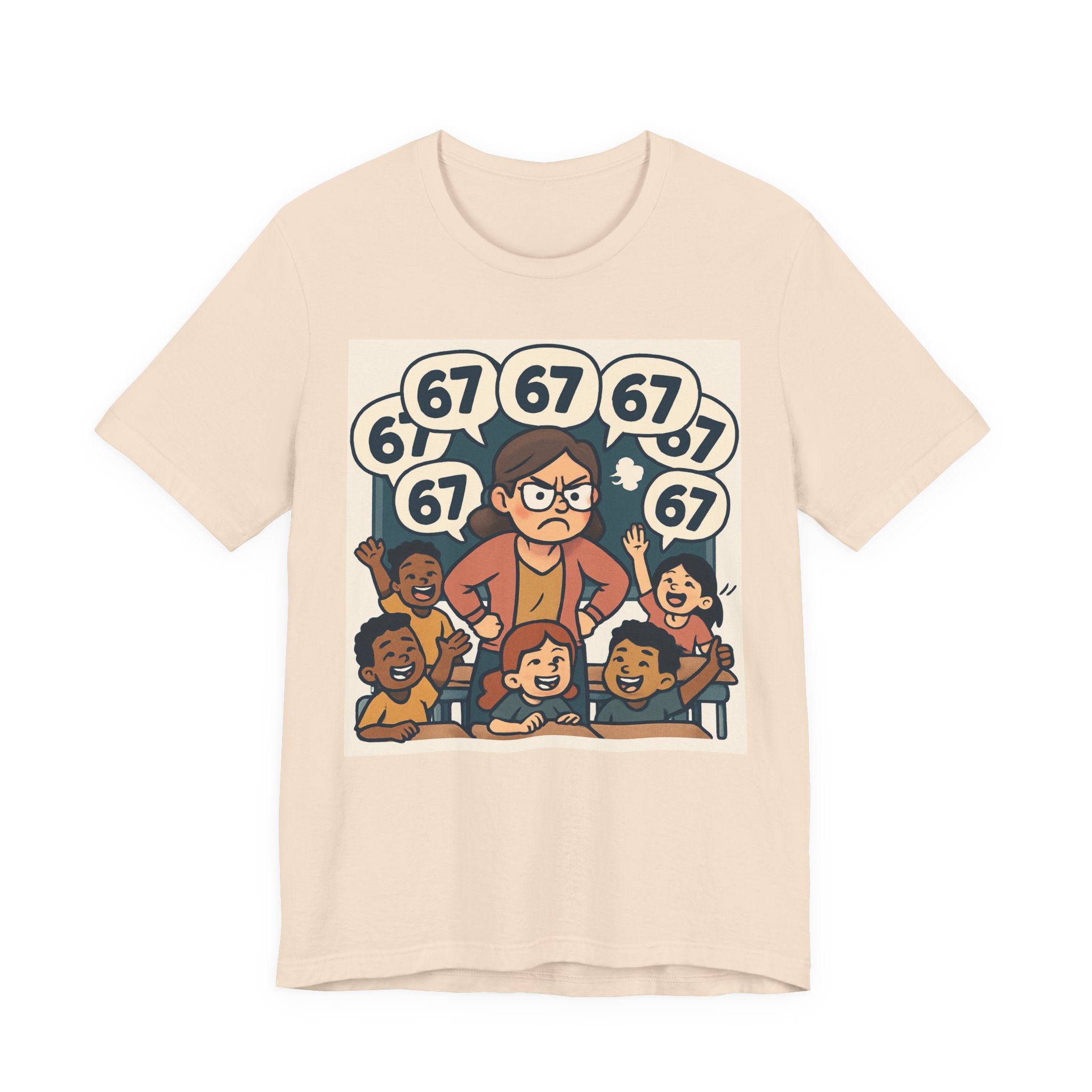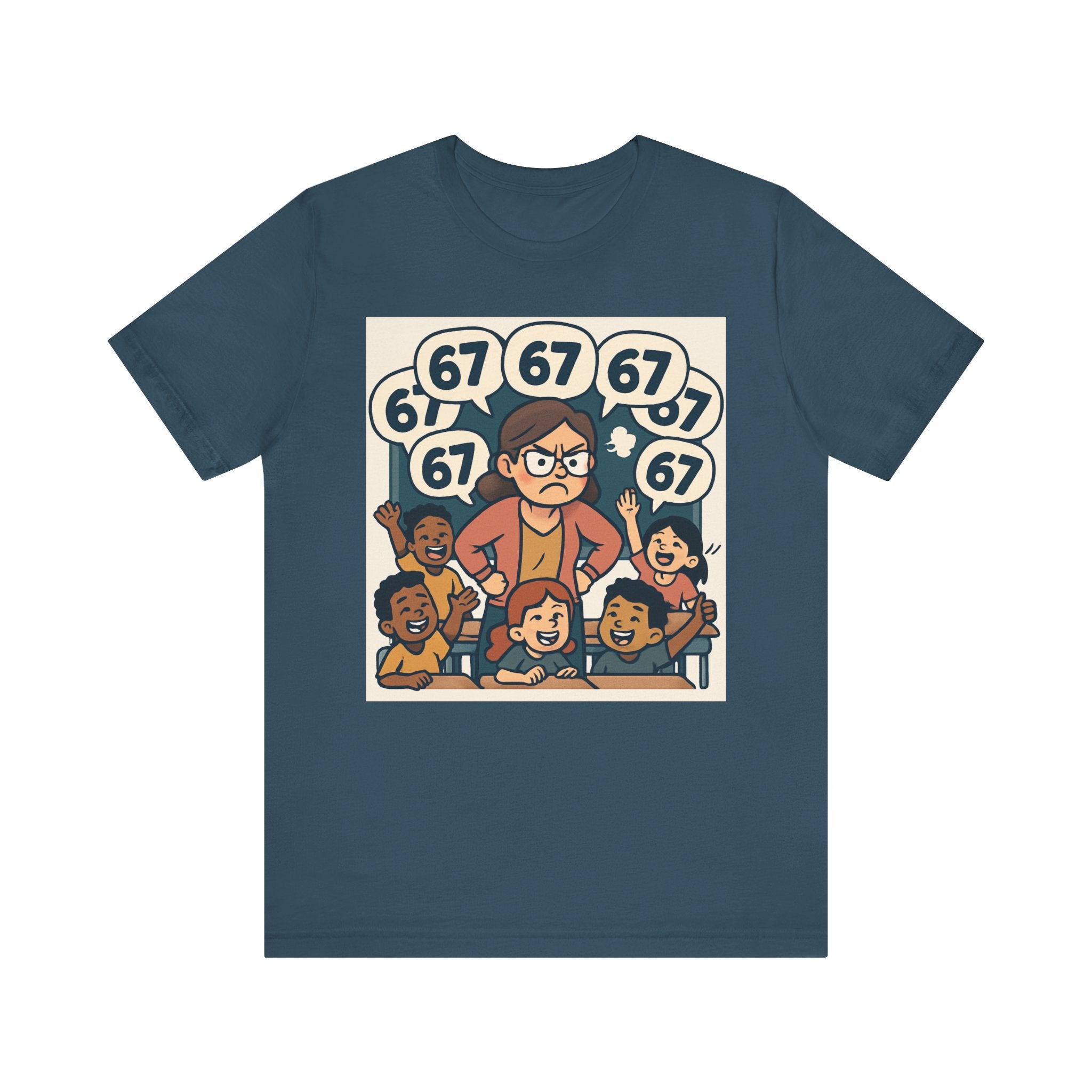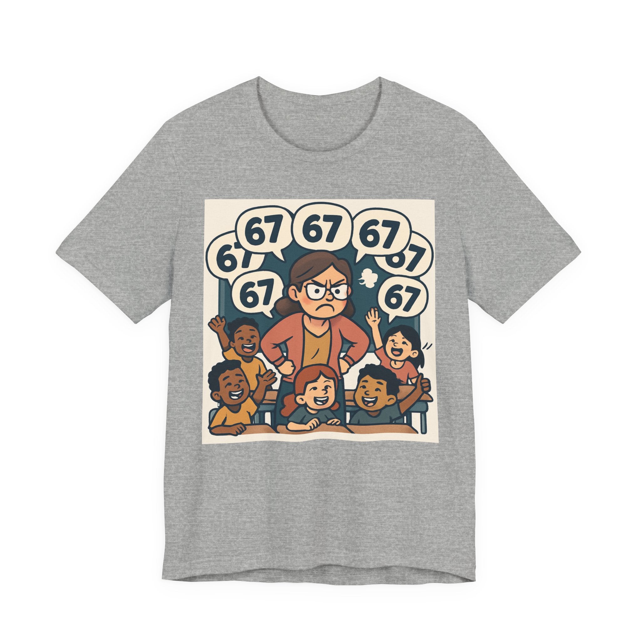 Add a dose of classroom humor to your wardrobe with our t-shirt featuring a frustrated teacher in a classroom where every kid’s answer is “67!” Perfect for teachers, students, and anyone who appreciates a good laugh, this playful tee captures the fun (and chaos) of school life. Made from ultra-soft, premium fabric, it offers all-day comfort and a standout design that’s sure to get smiles. Wear it to school, casual outings, or gift it to your favorite educator—because sometimes, 67 really is the only answer!