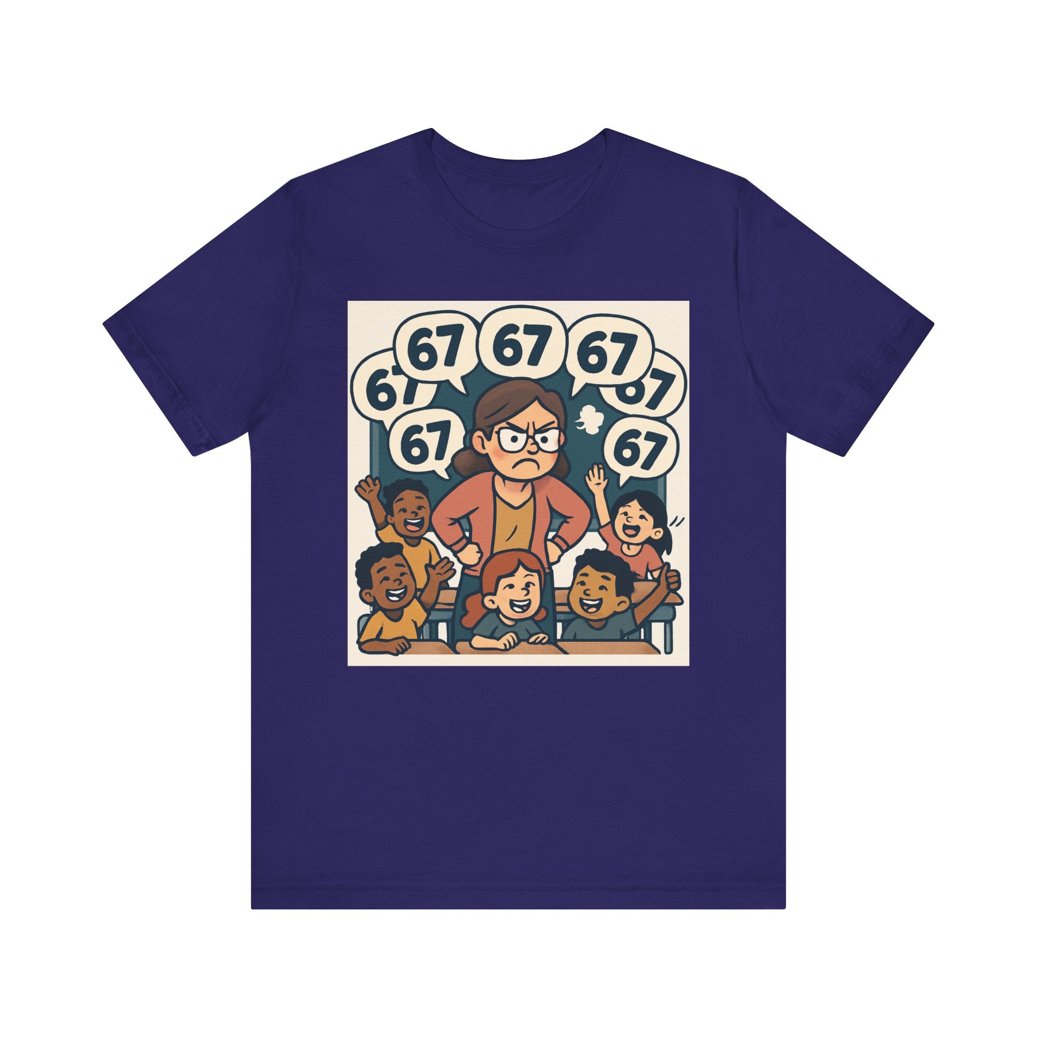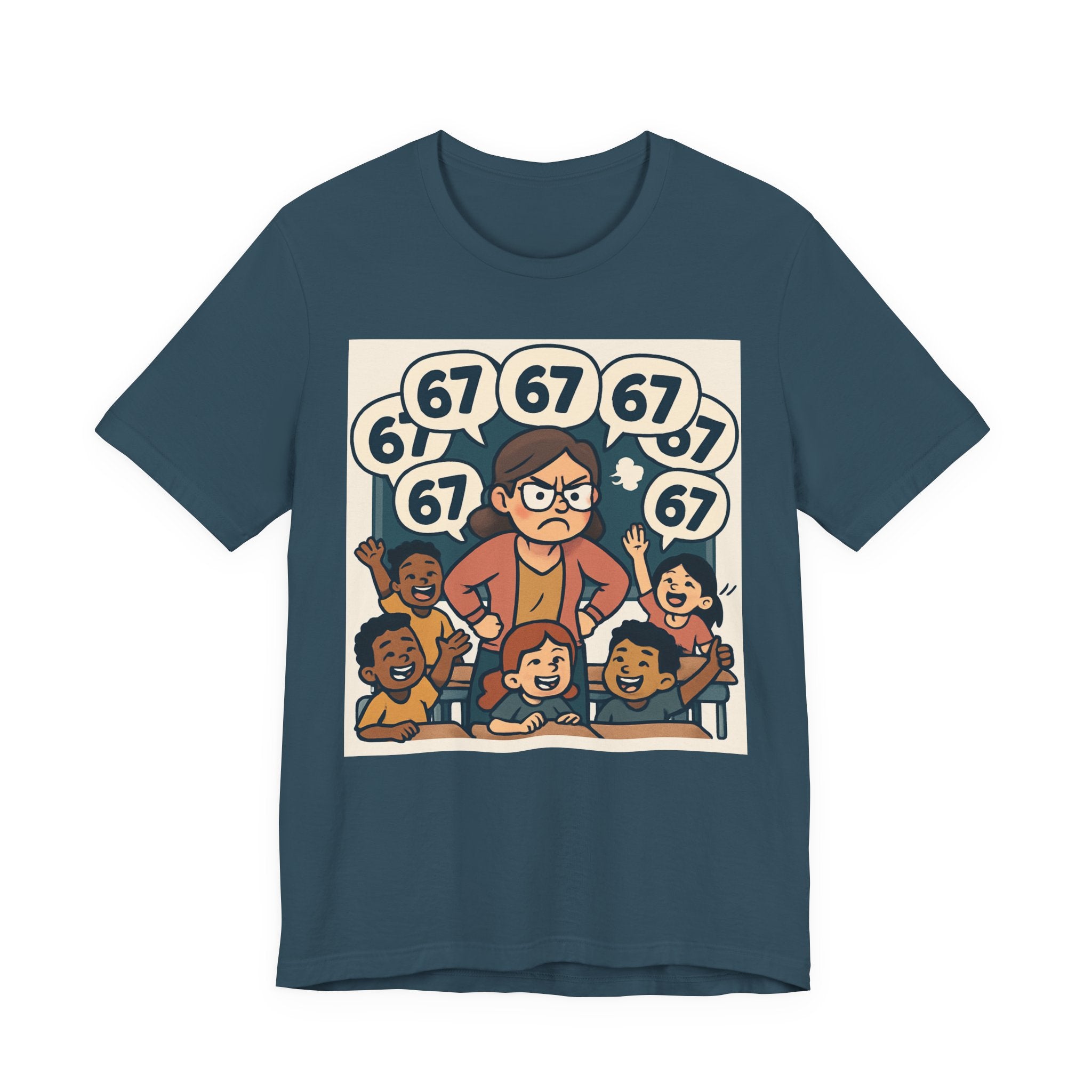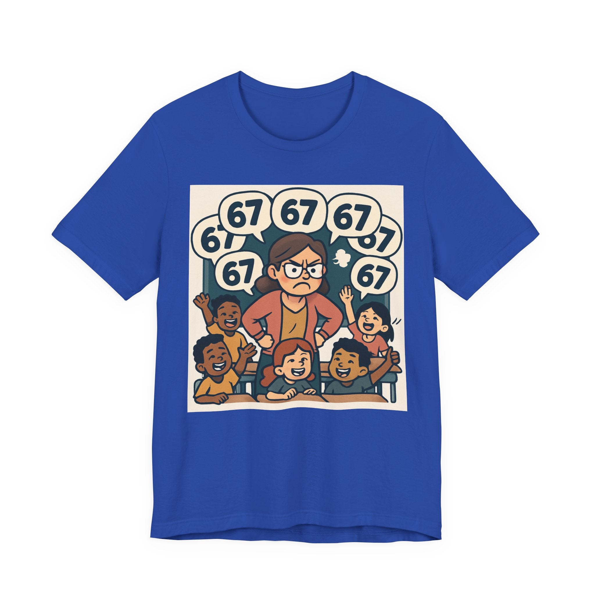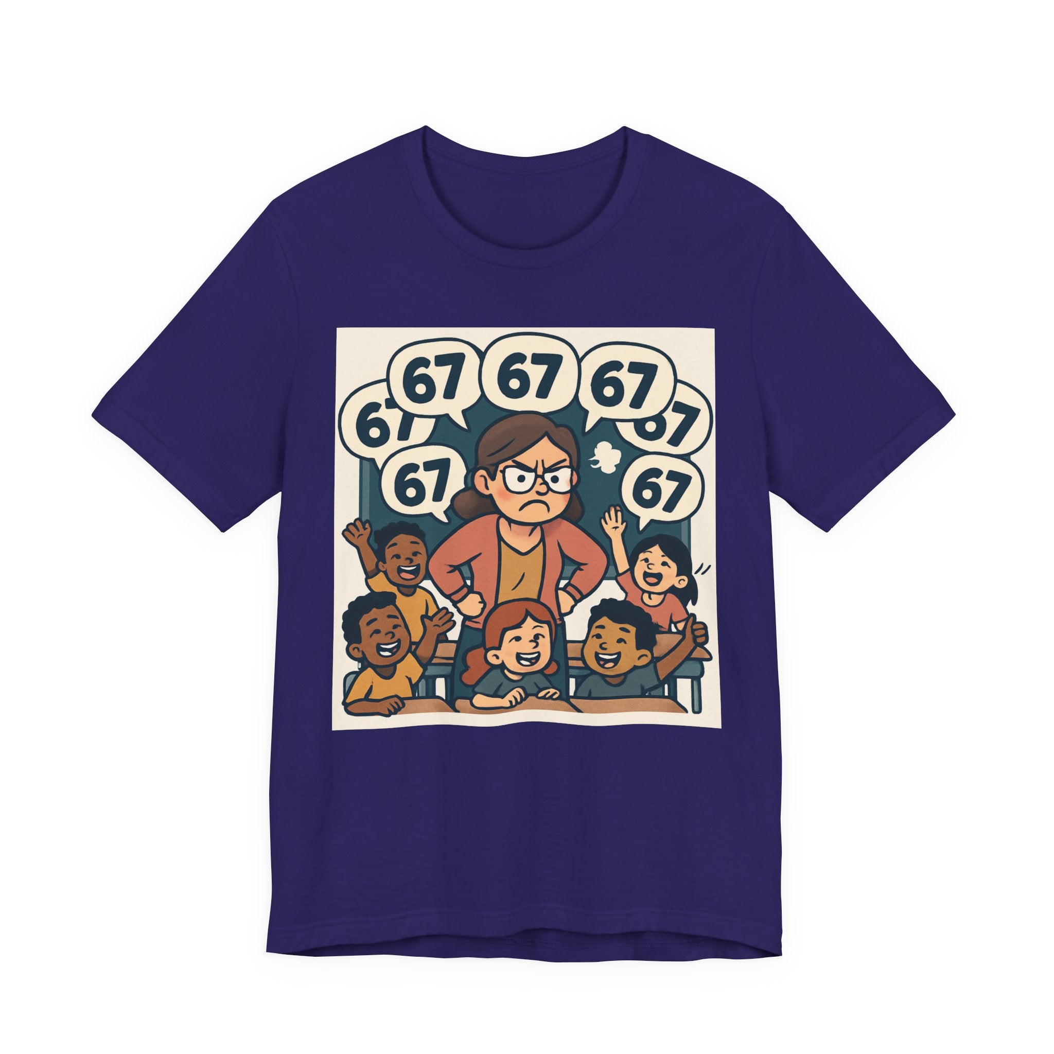 Add a dose of classroom humor to your wardrobe with our t-shirt featuring a frustrated teacher in a classroom where every kid’s answer is “67!” Perfect for teachers, students, and anyone who appreciates a good laugh, this playful tee captures the fun (and chaos) of school life. Made from ultra-soft, premium fabric, it offers all-day comfort and a standout design that’s sure to get smiles. Wear it to school, casual outings, or gift it to your favorite educator—because sometimes, 67 really is the only answer!