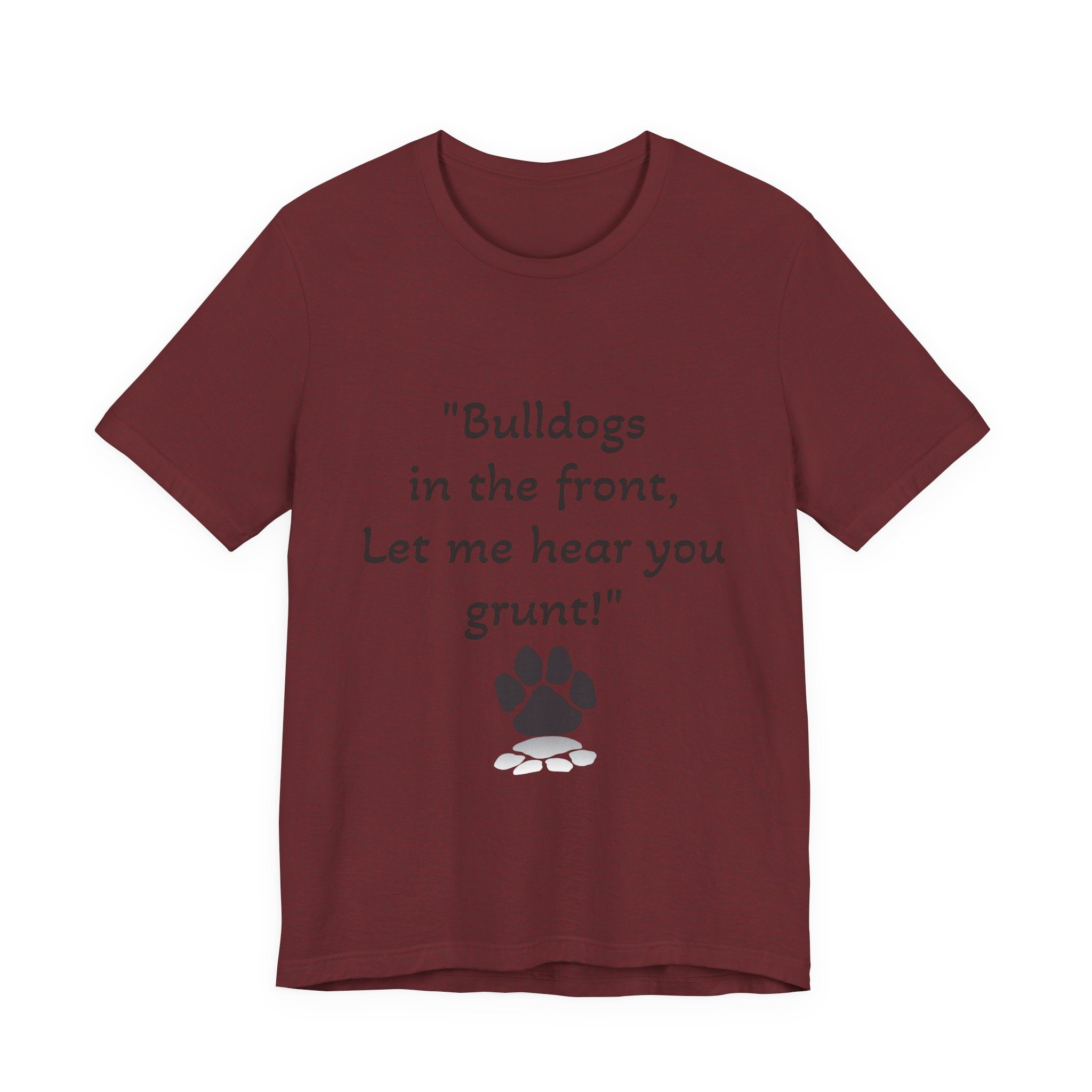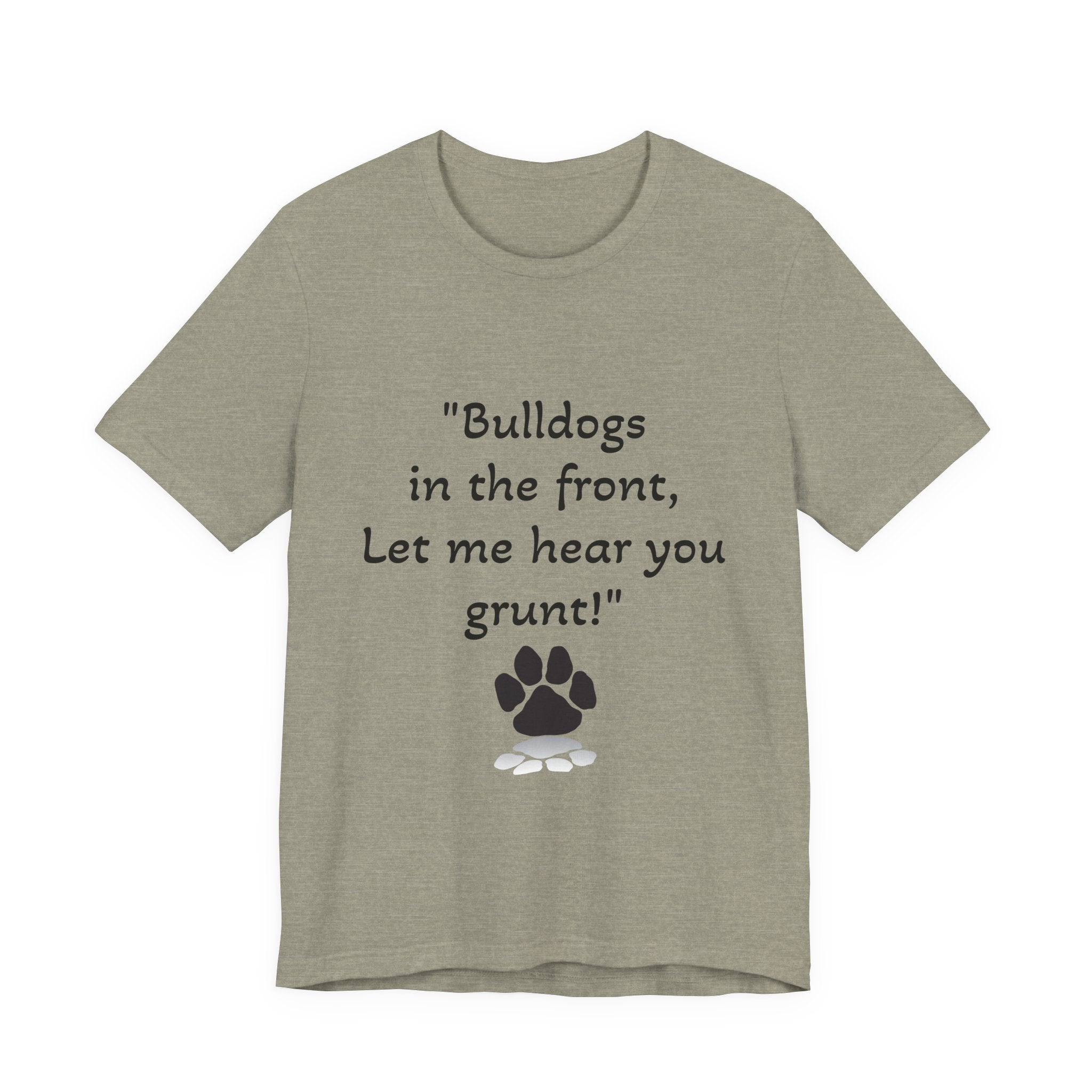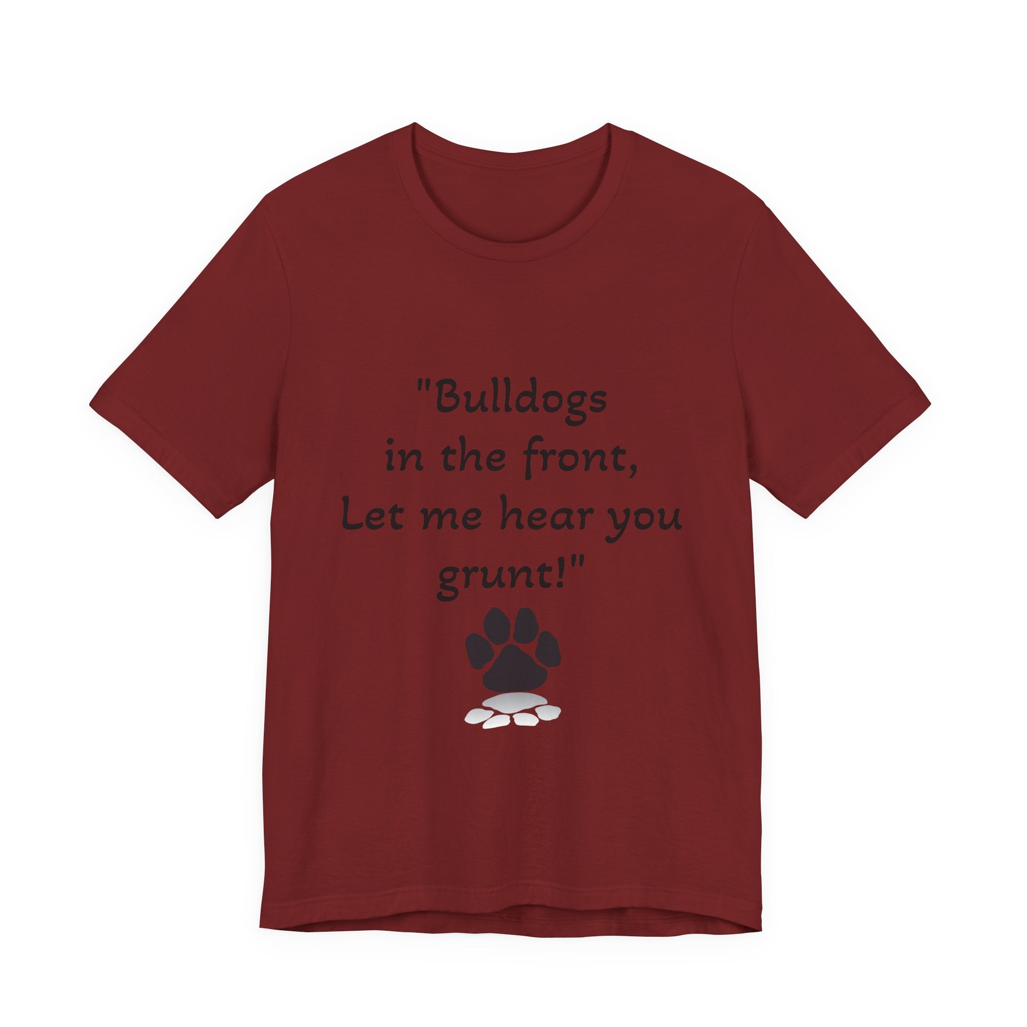 "Bulldogs in the front, Let me hear you grunt!" Unisex Jersey Short Sleeve Tee