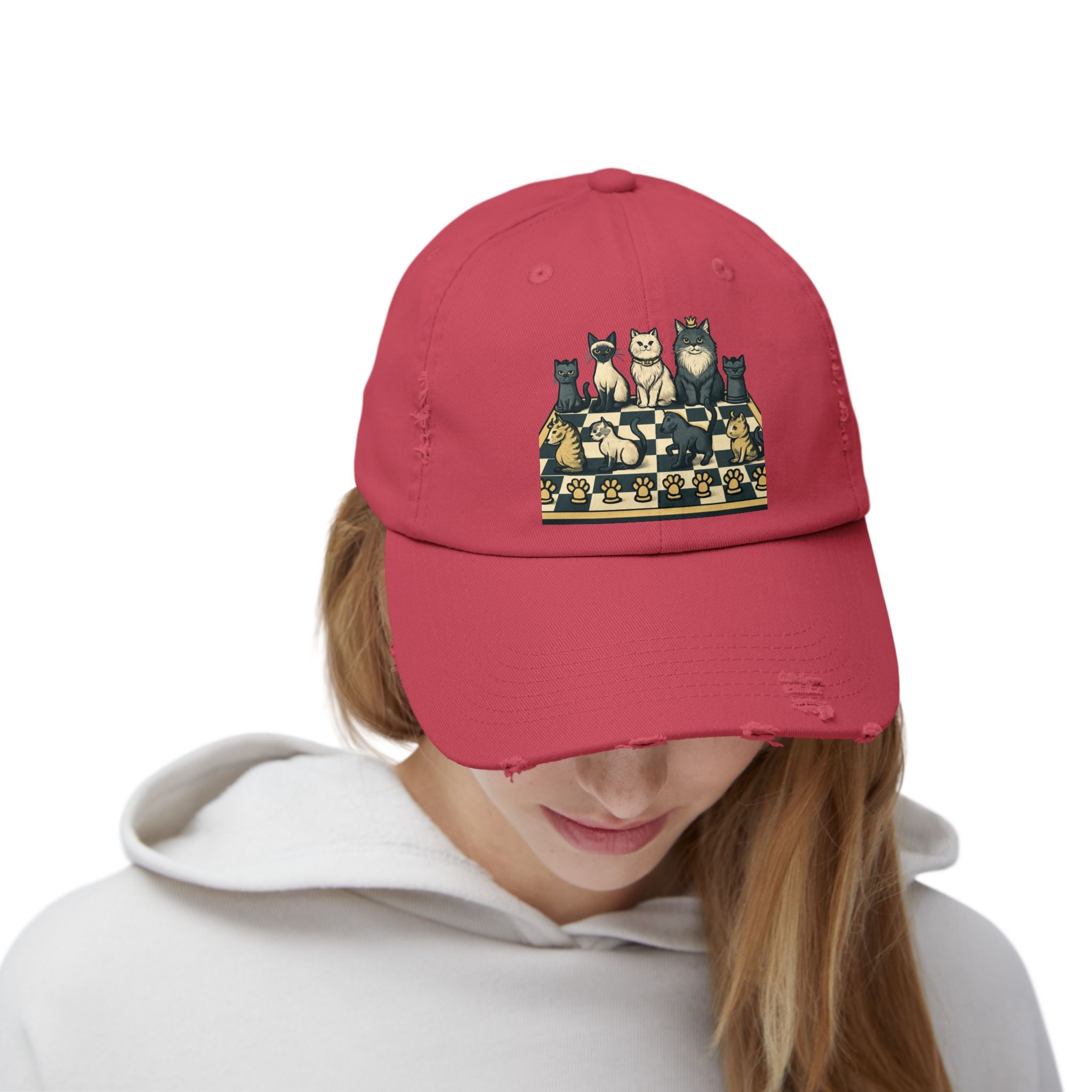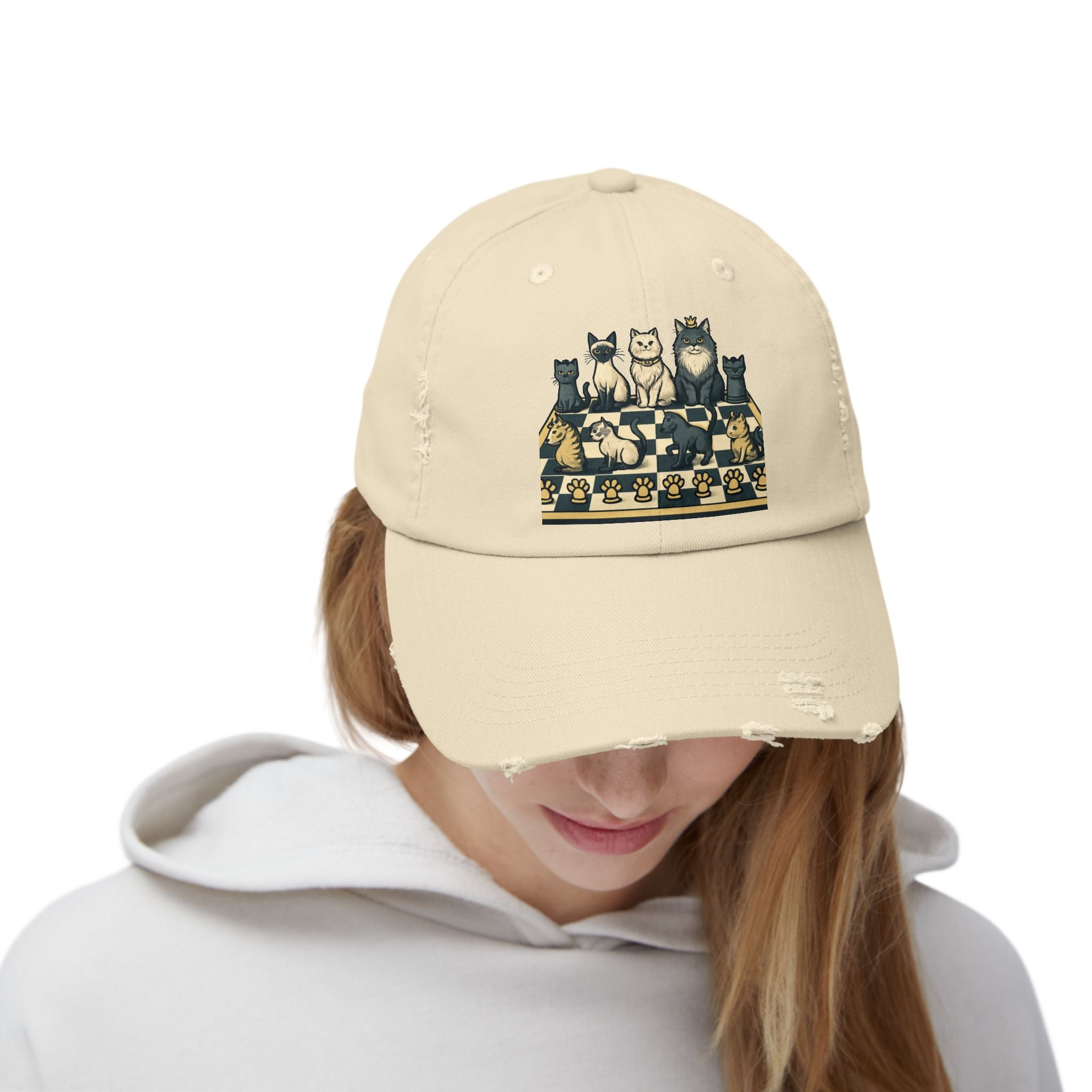 "Chess with cat pieces" Unisex Distressed Cap
