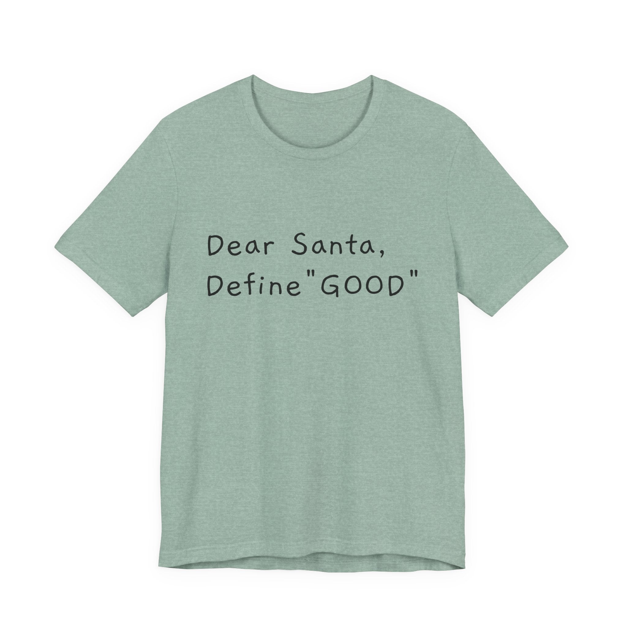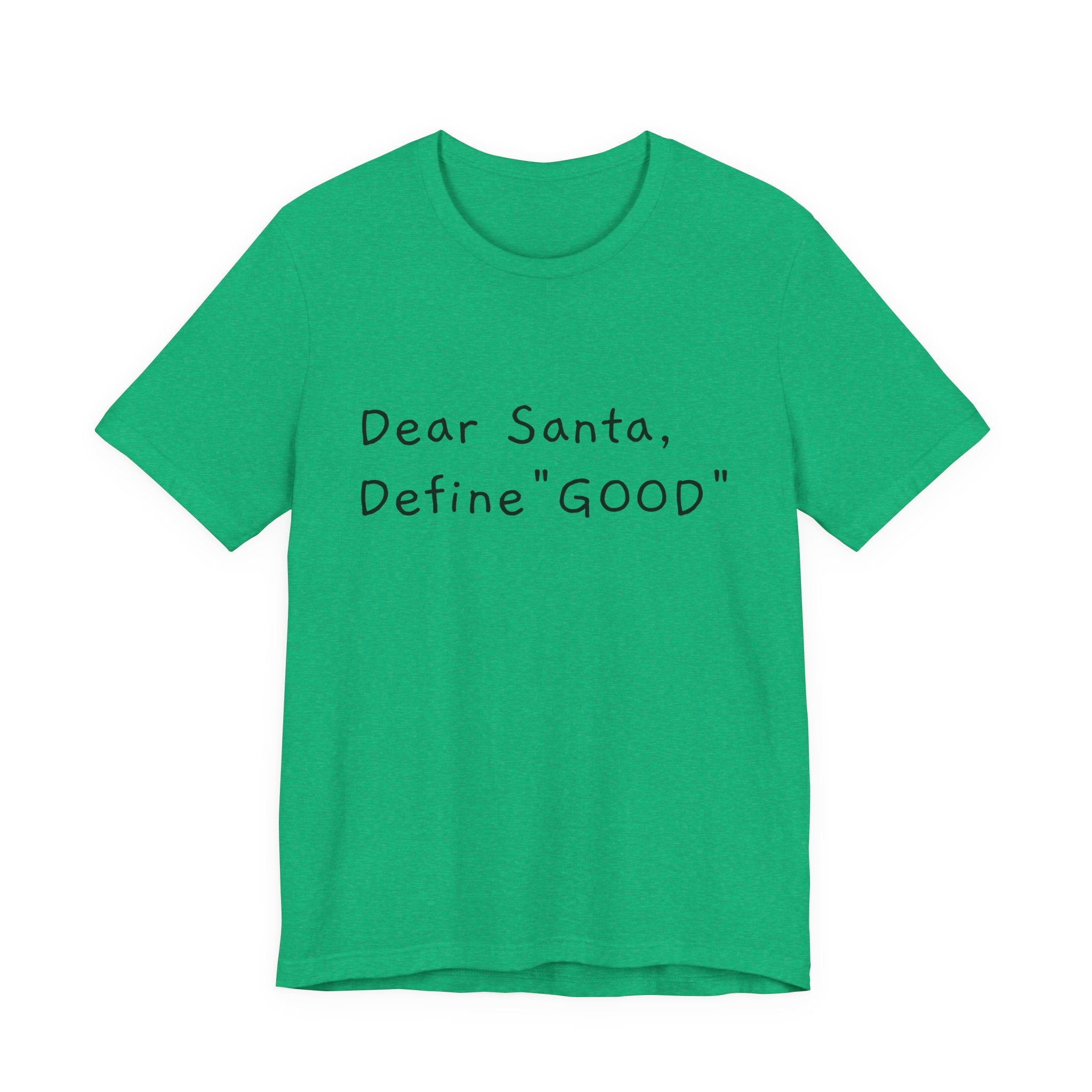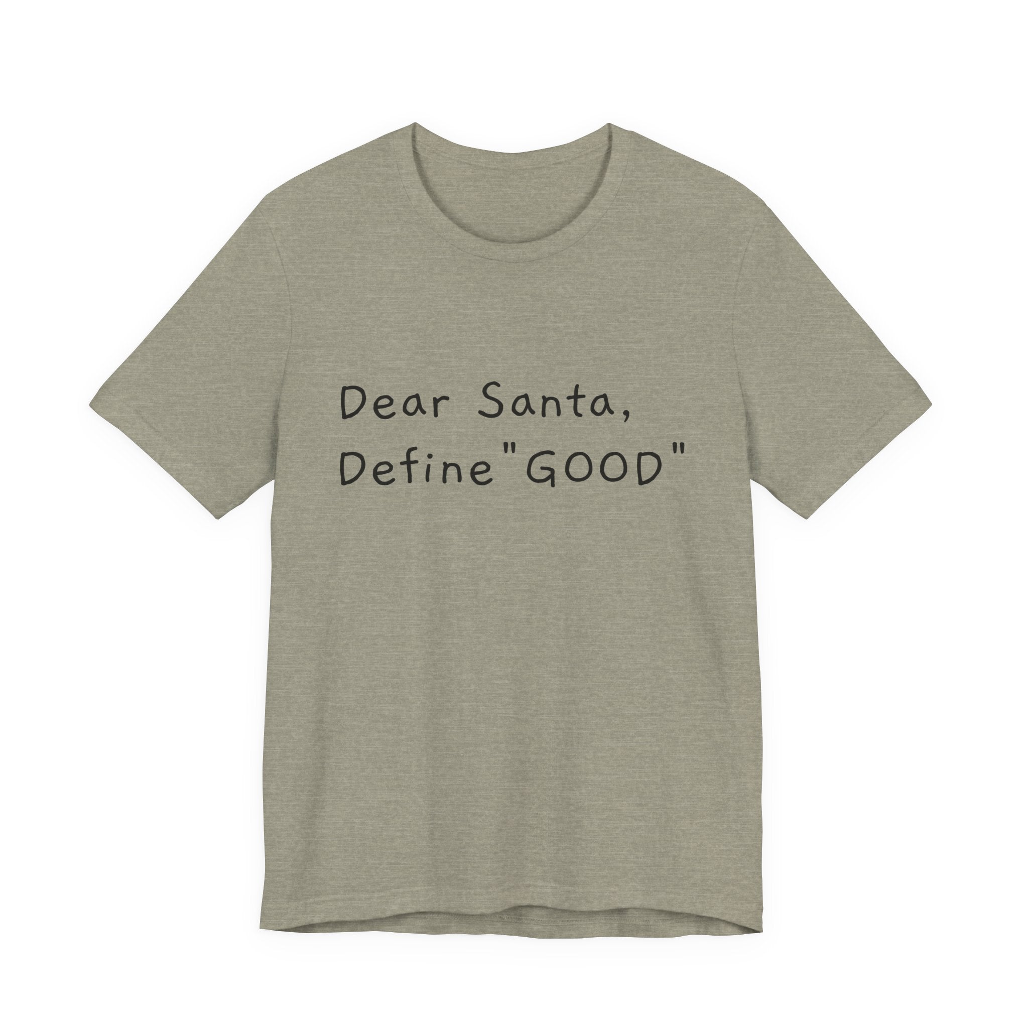 "Dear Santa, Define Good" Unisex Jersey Short Sleeve Tee