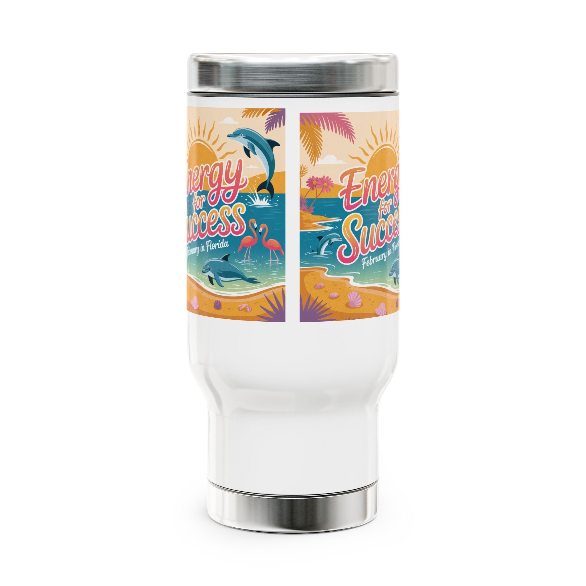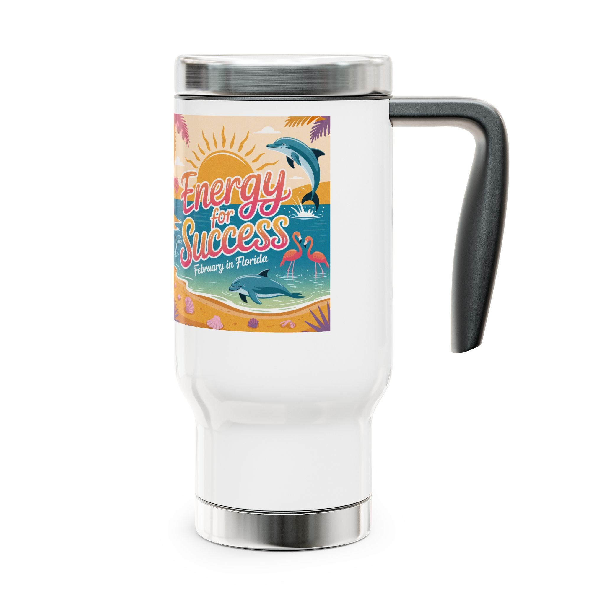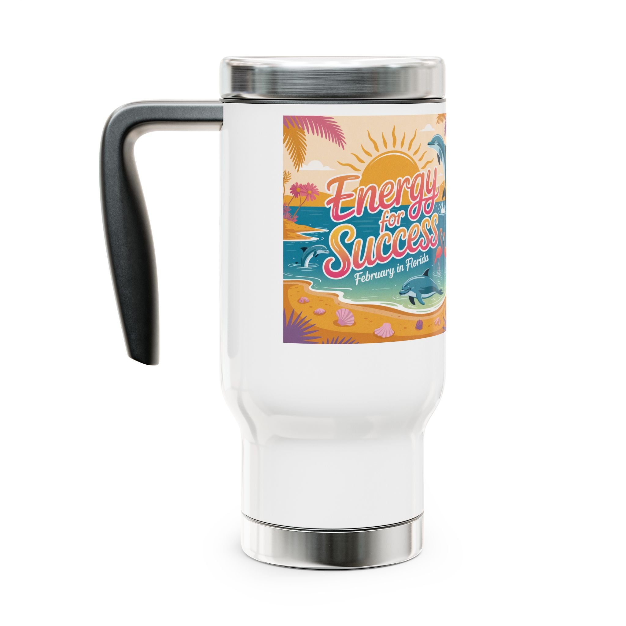 " February in Florida, Energy for Success" Stainless Steel Travel Mug with Handle, 14oz