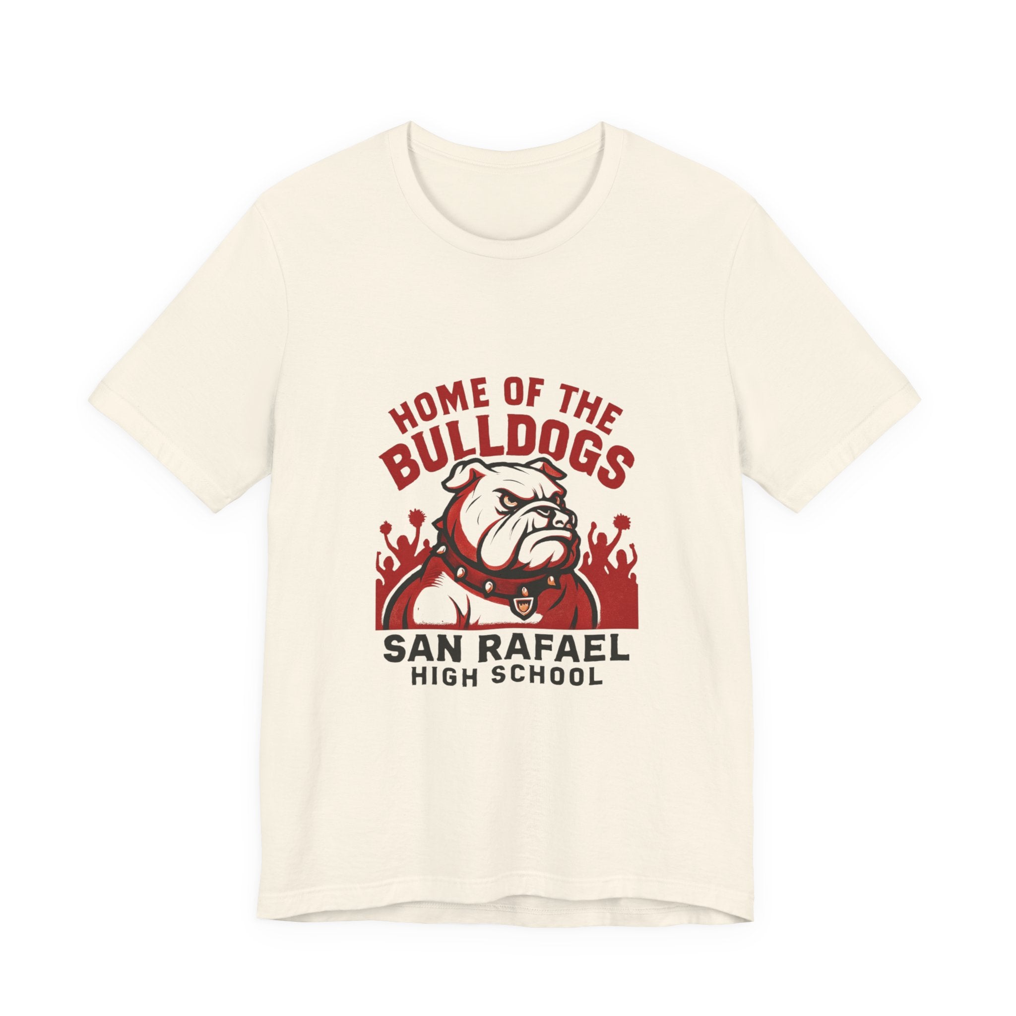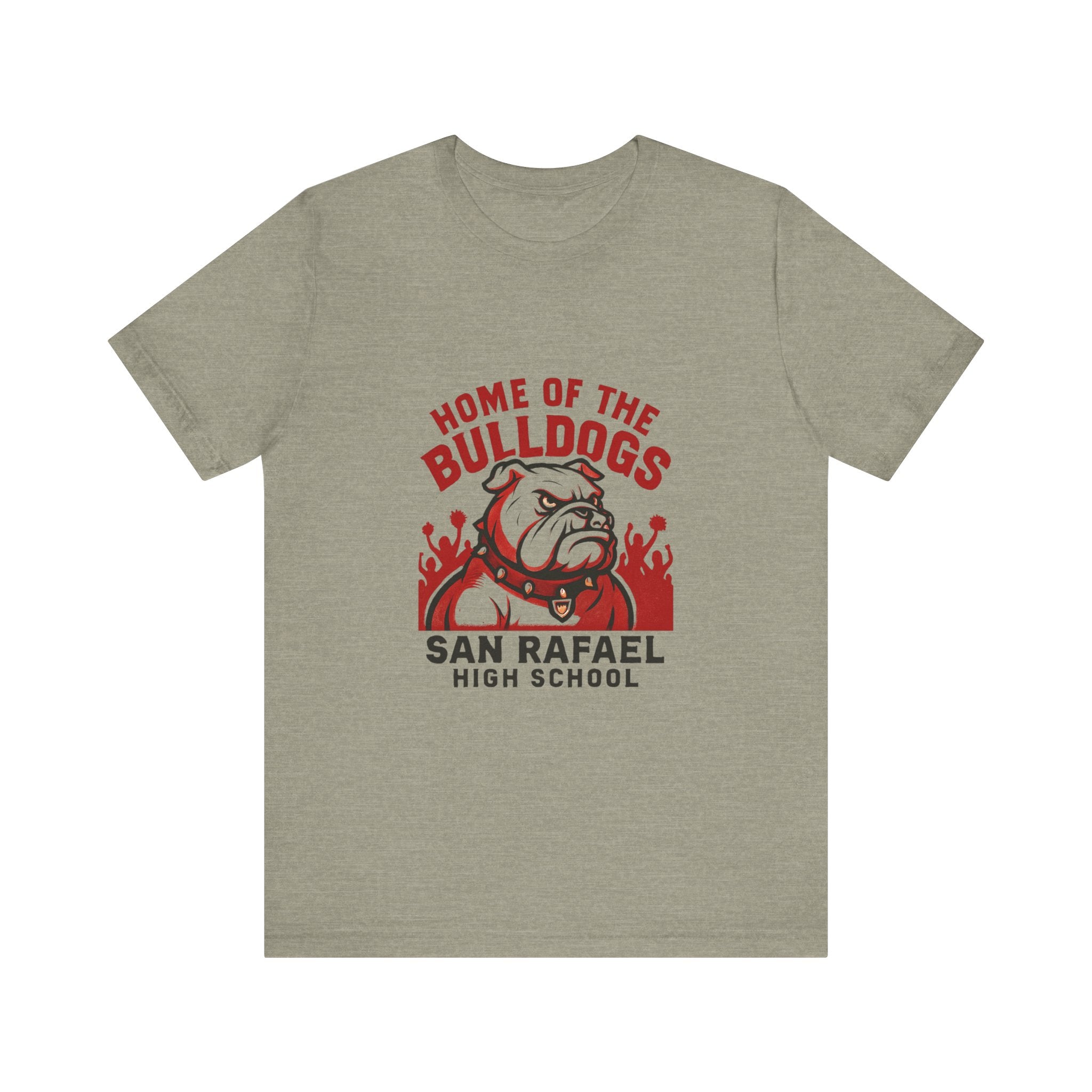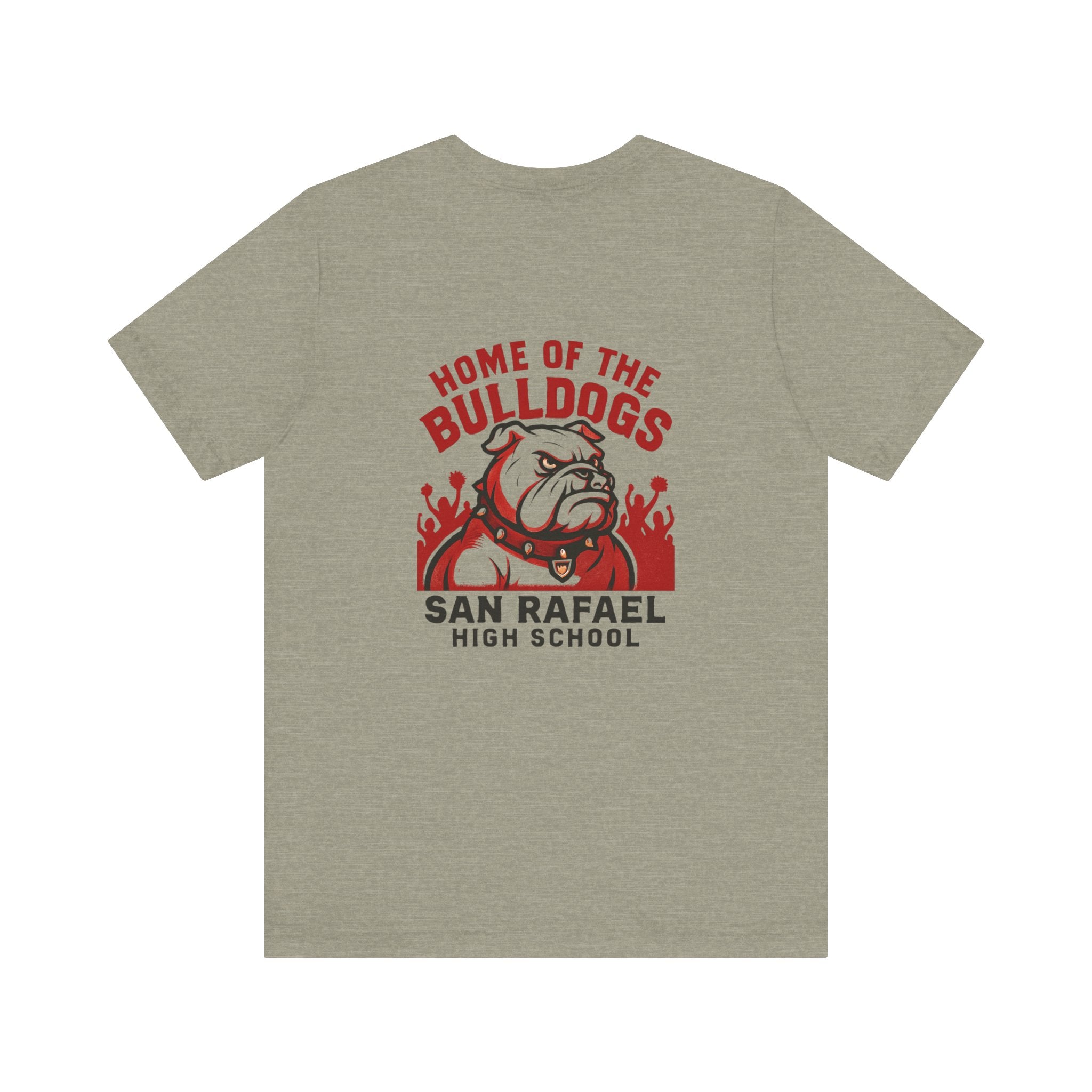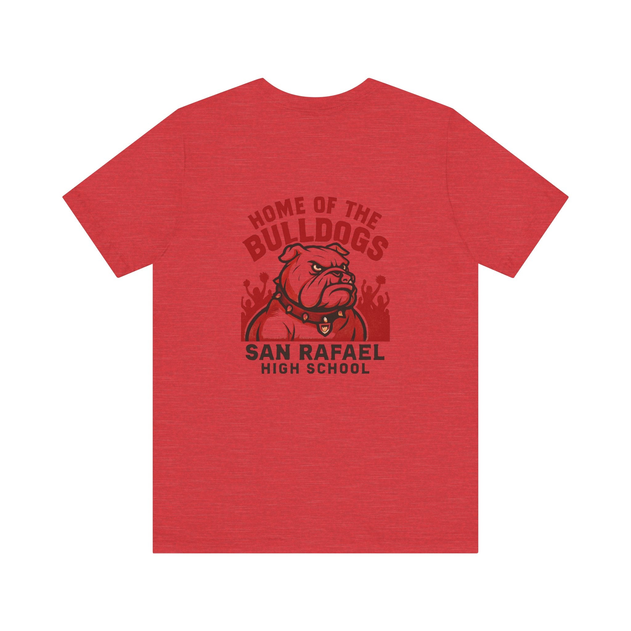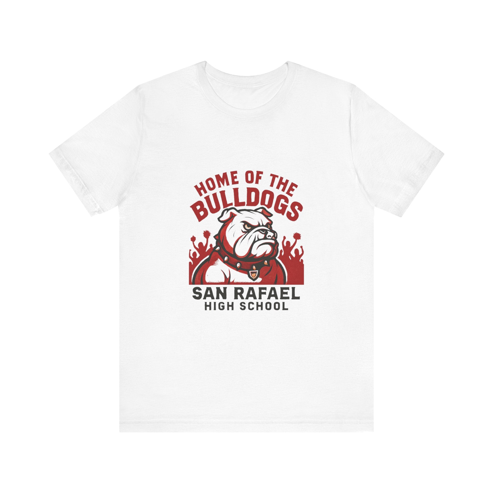 "Home of the Bulldogs - San Rafael High School (Students cheering on bulldog)" Unisex Jersey Short Sleeve Tee