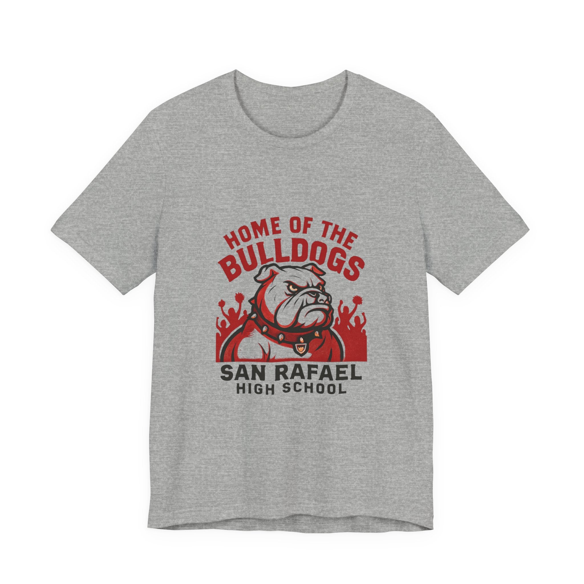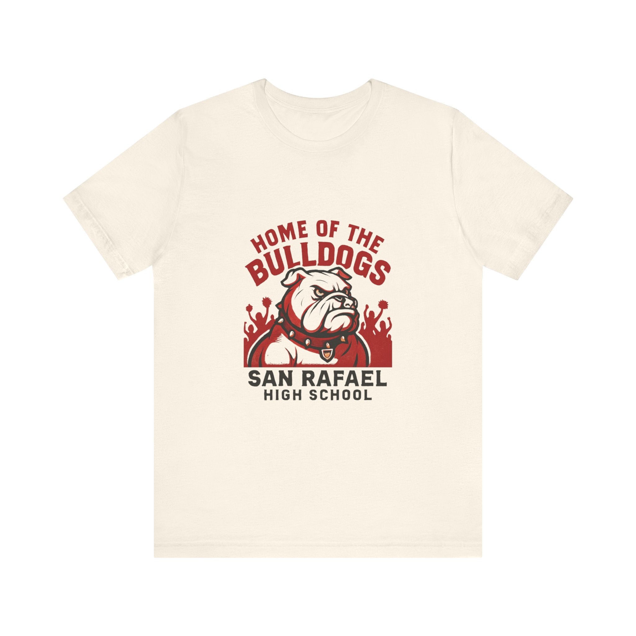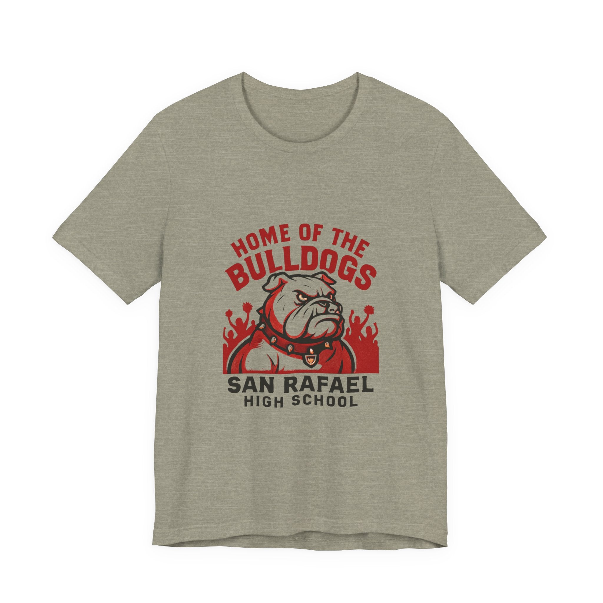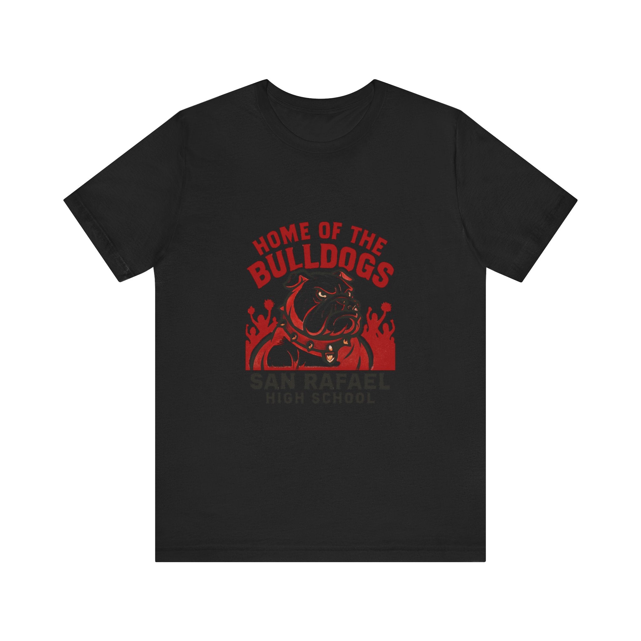 "Home of the Bulldogs - San Rafael High School (Students cheering on bulldog)" Unisex Jersey Short Sleeve Tee