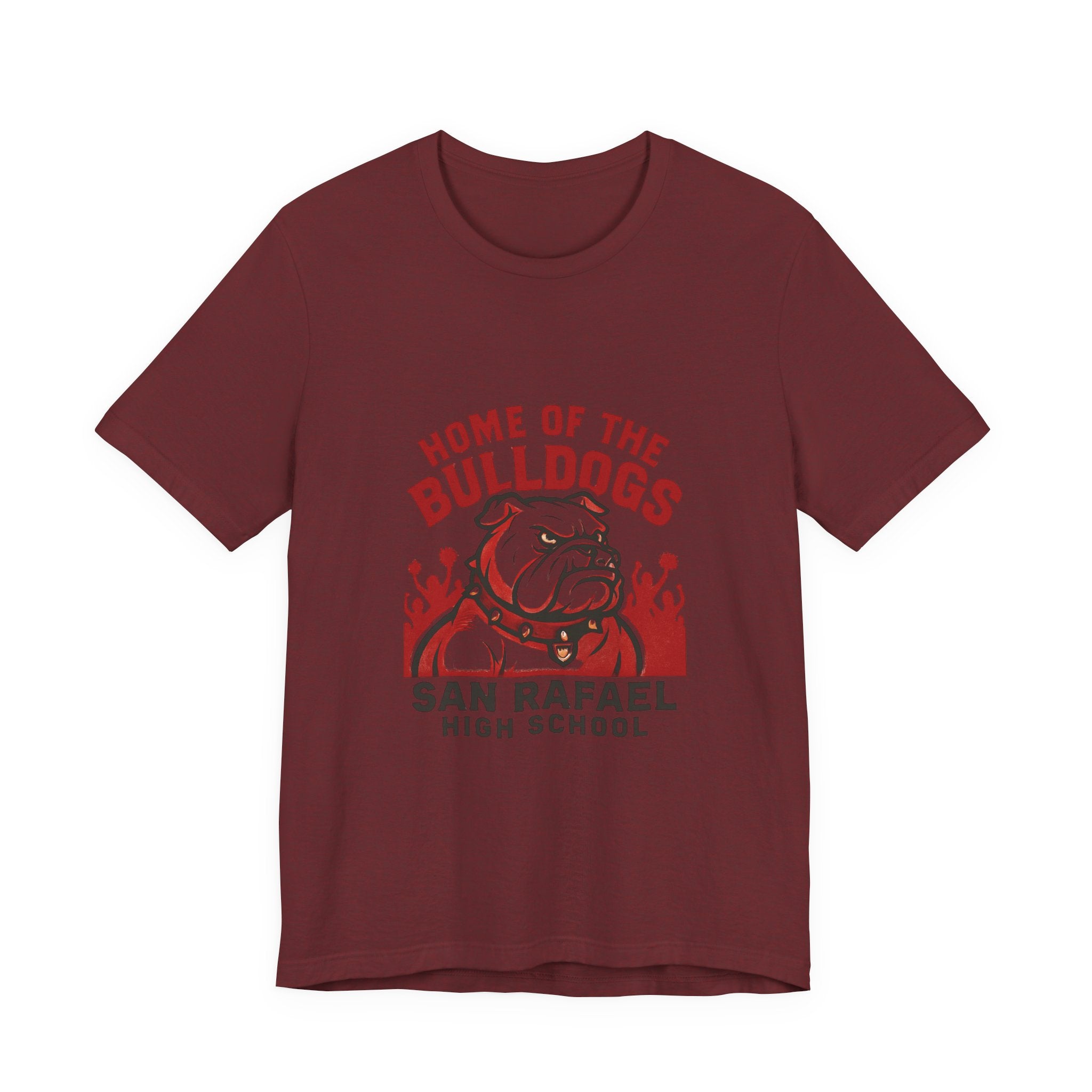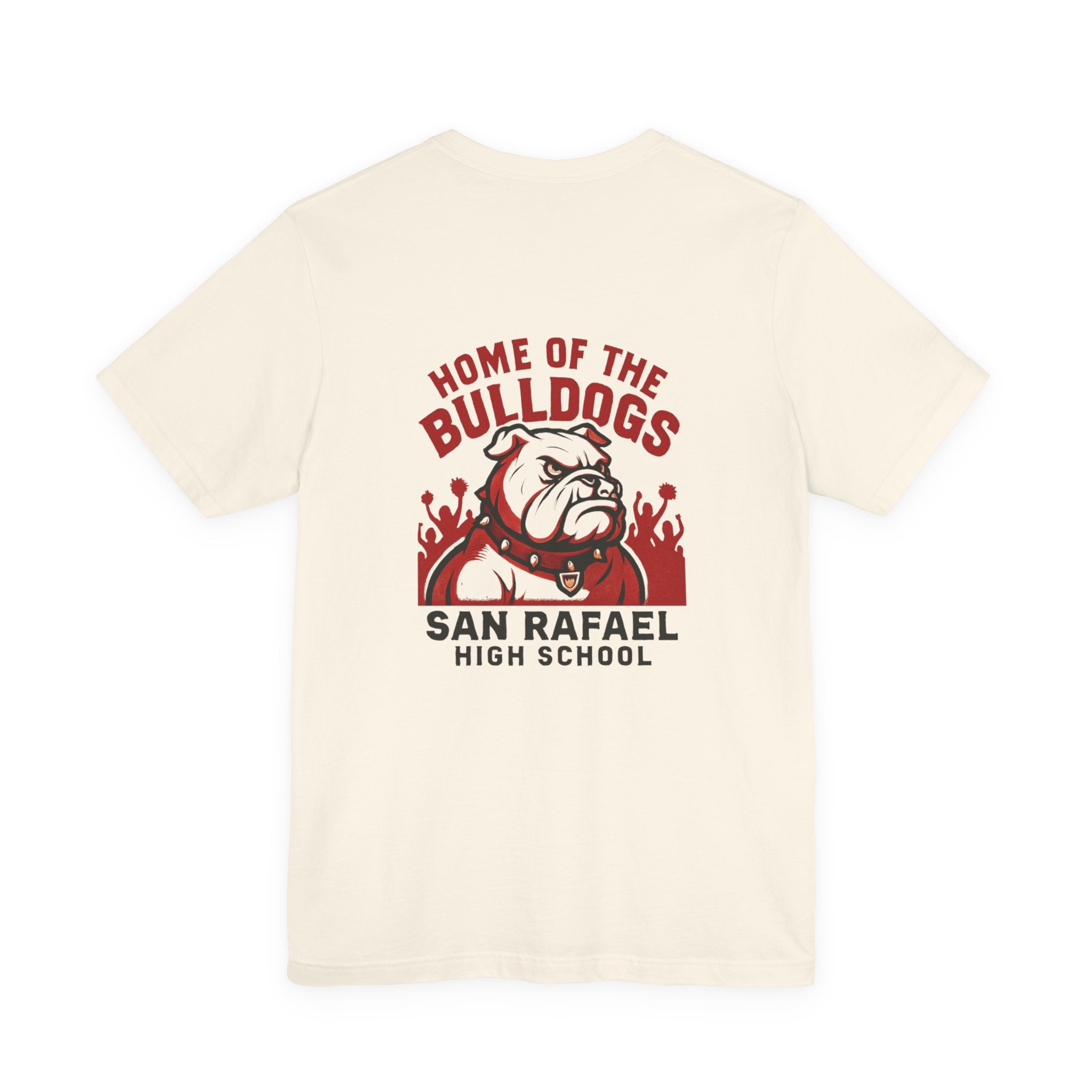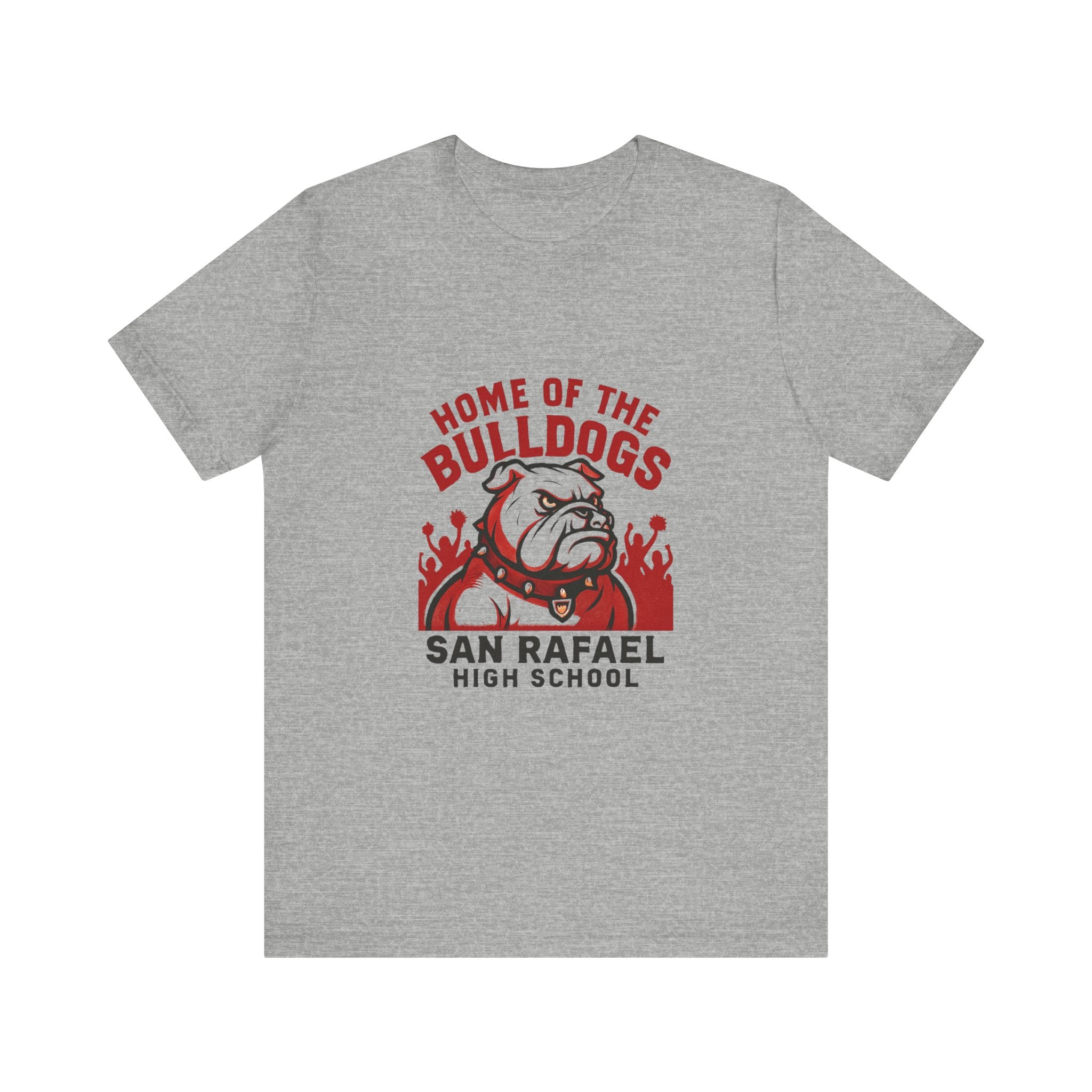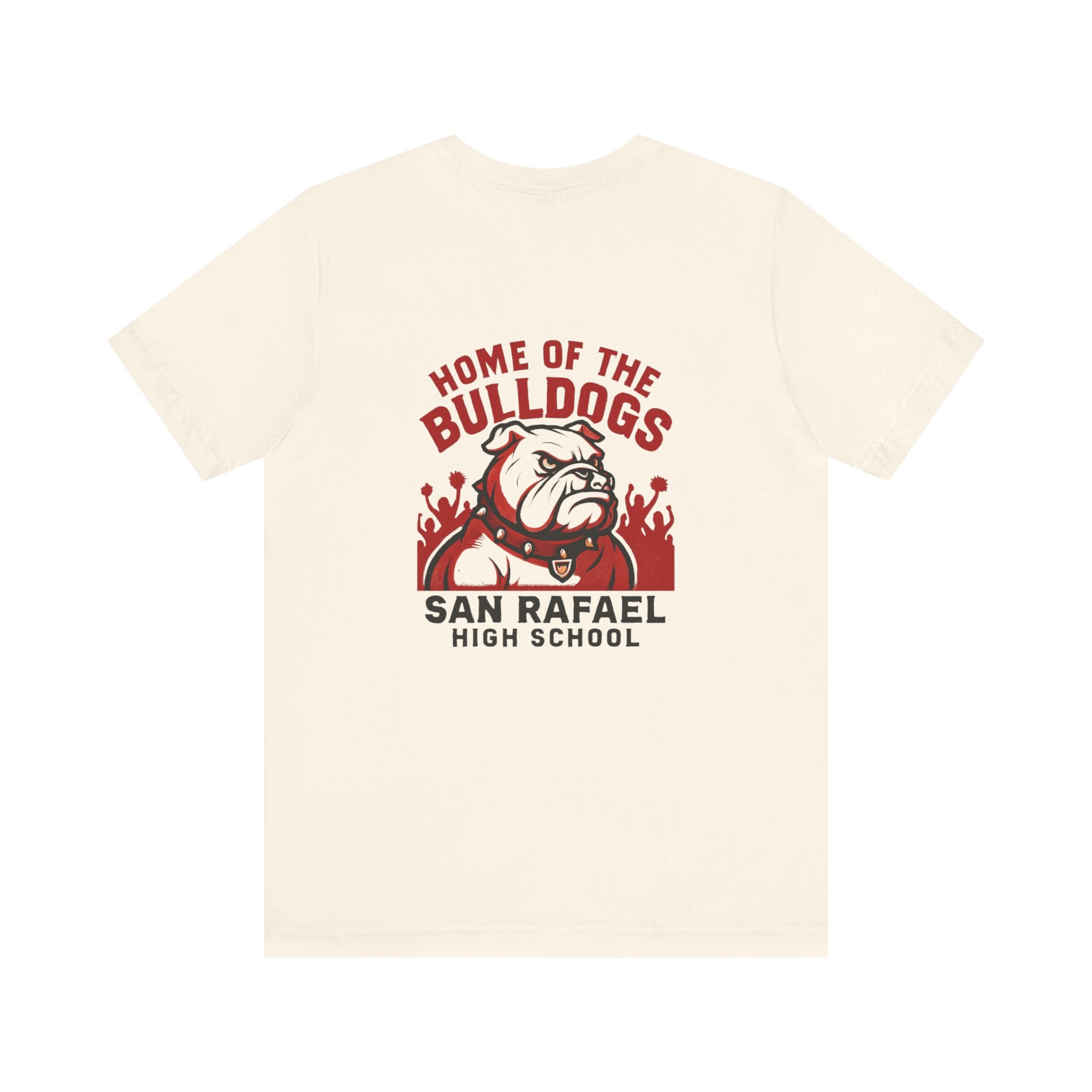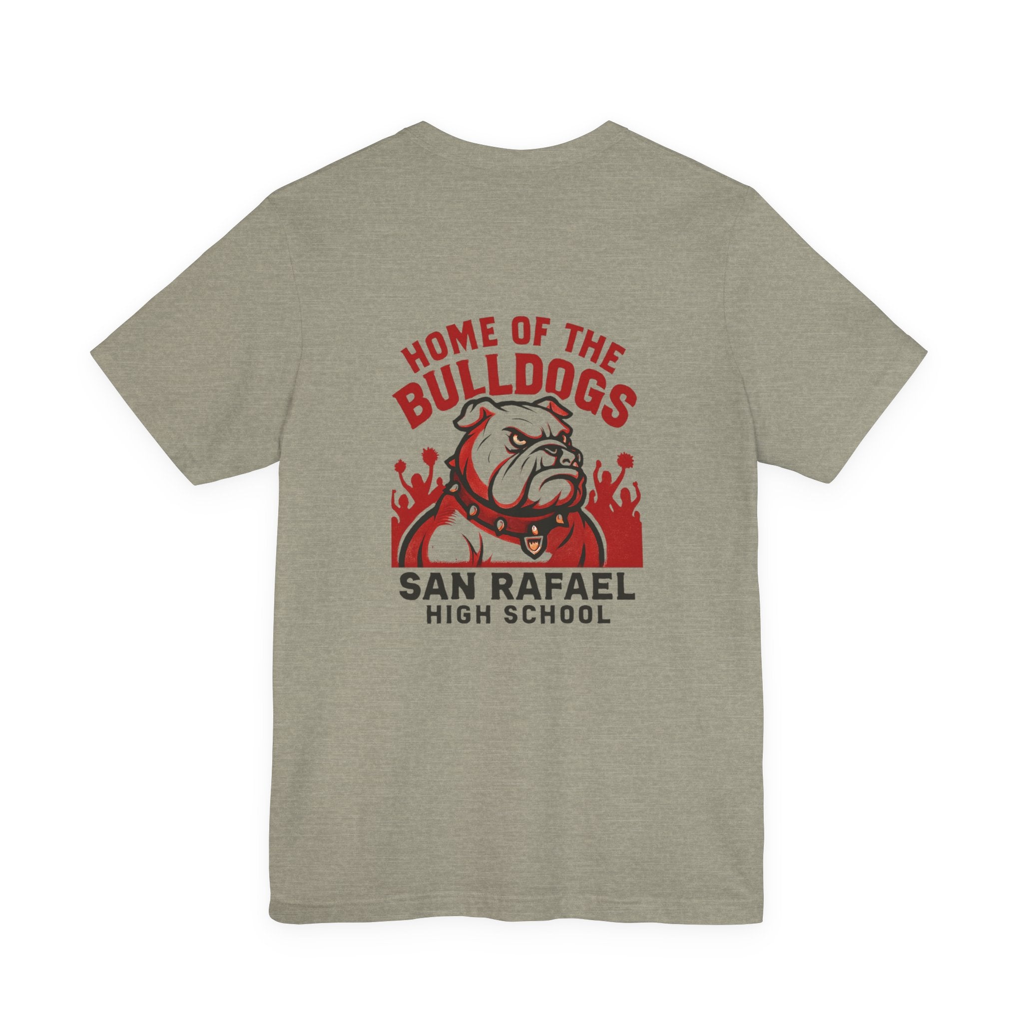 "Home of the Bulldogs - San Rafael High School (Students cheering on bulldog)" Unisex Jersey Short Sleeve Tee